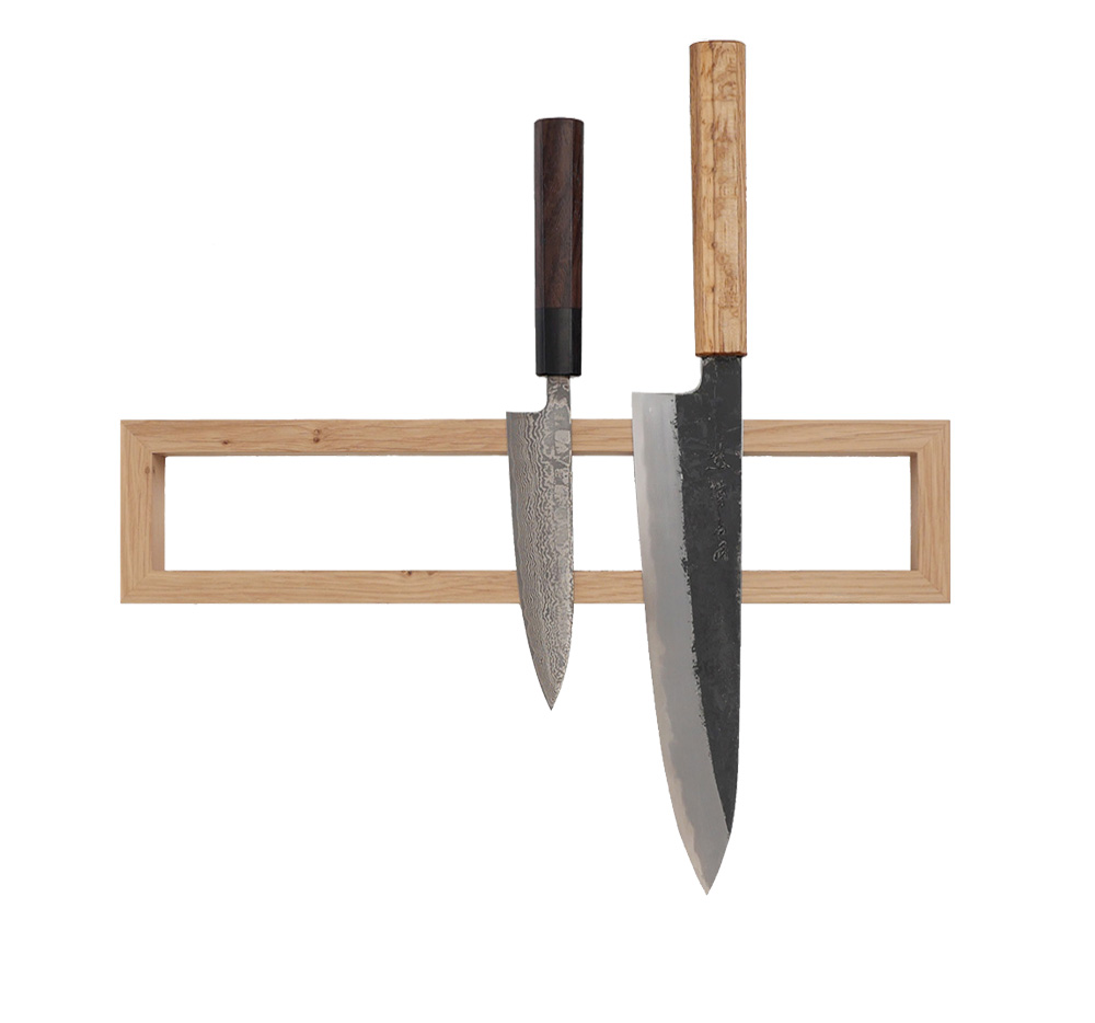 Clap Design har utvecklat en mycket spännande magnetlist som kan monteras horisontellt eller vertikalt på väggen. De infrästa neodymmagneterna är kraftiga och håller garanterat knivarna på plats. Dessutom sitter knivar extra stabilt då avståndet mellan magnet-raderna är väl tilltaget. Vi rekommenderar!