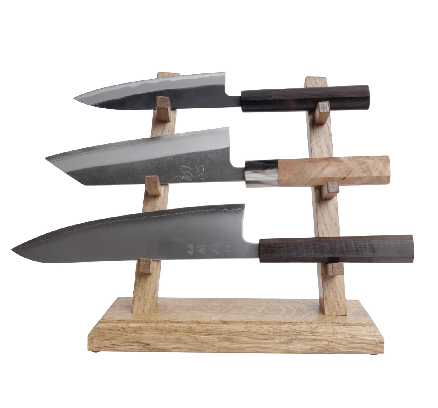 Ett klassiskt japanskt knivställ i ek med plats för 3 st knivar.