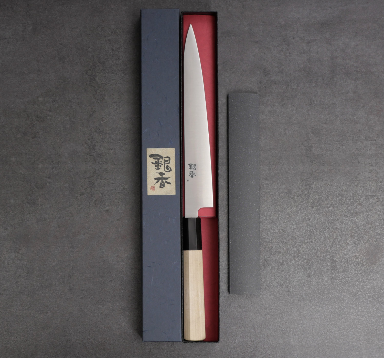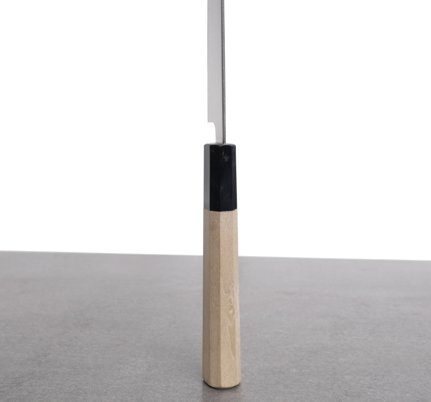 Kniven tillverkas av Ashi Hamono i Sakai, Japan, där varje moment från bladslipning till skaft och saya sker internt. Bladet är mycket tunt med en lätt konvex slipning som ger ett mjukt, följsamt skär och minimal friktion genom råvaran. Resultatet är en kniv som känns snabb, exakt och stabil trots sin låga vikt.