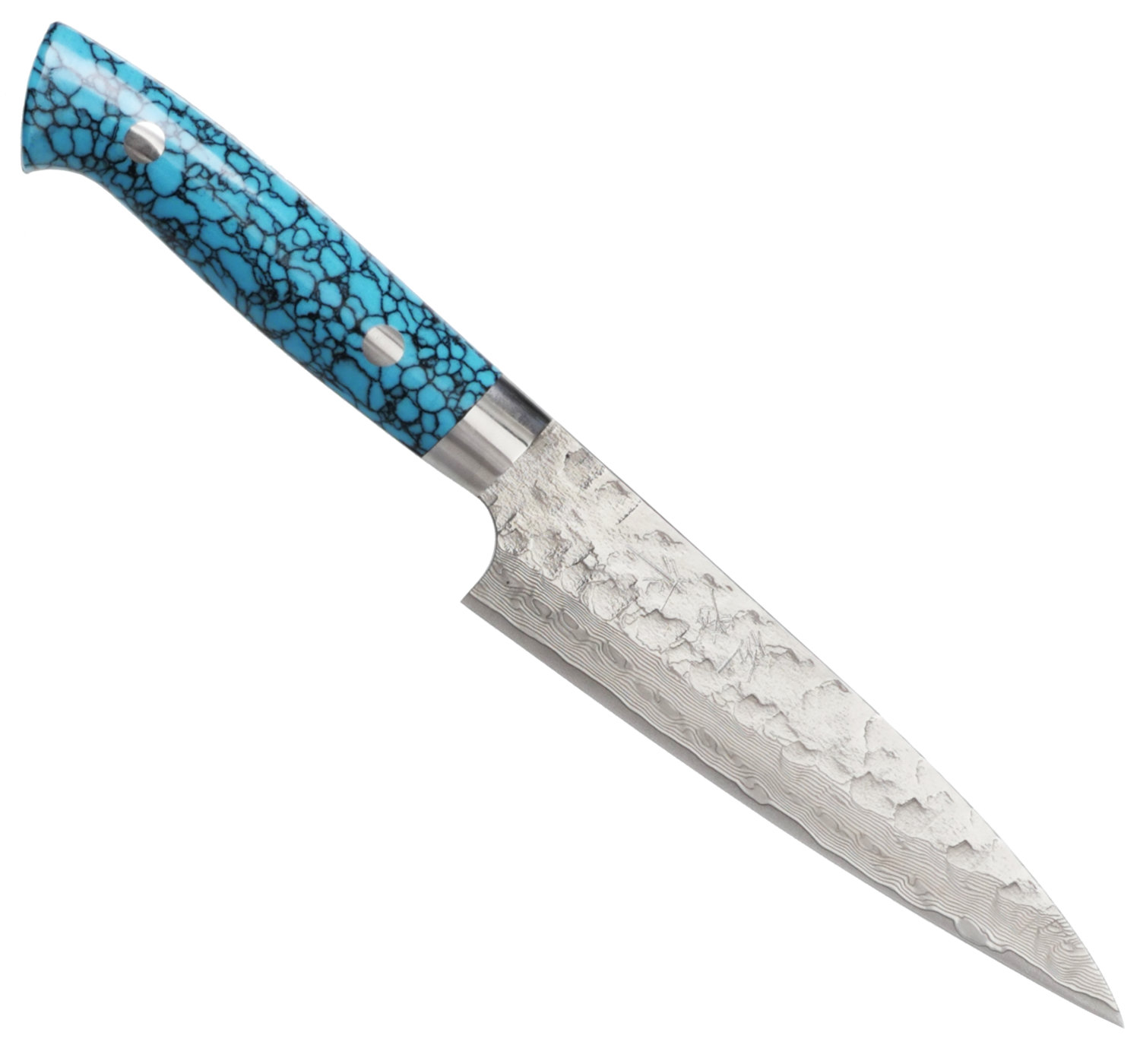 Ett vackert mästerverk från Takeshi Saji - Allkniv med 132 mm långt blad i vacker damaskusstål.