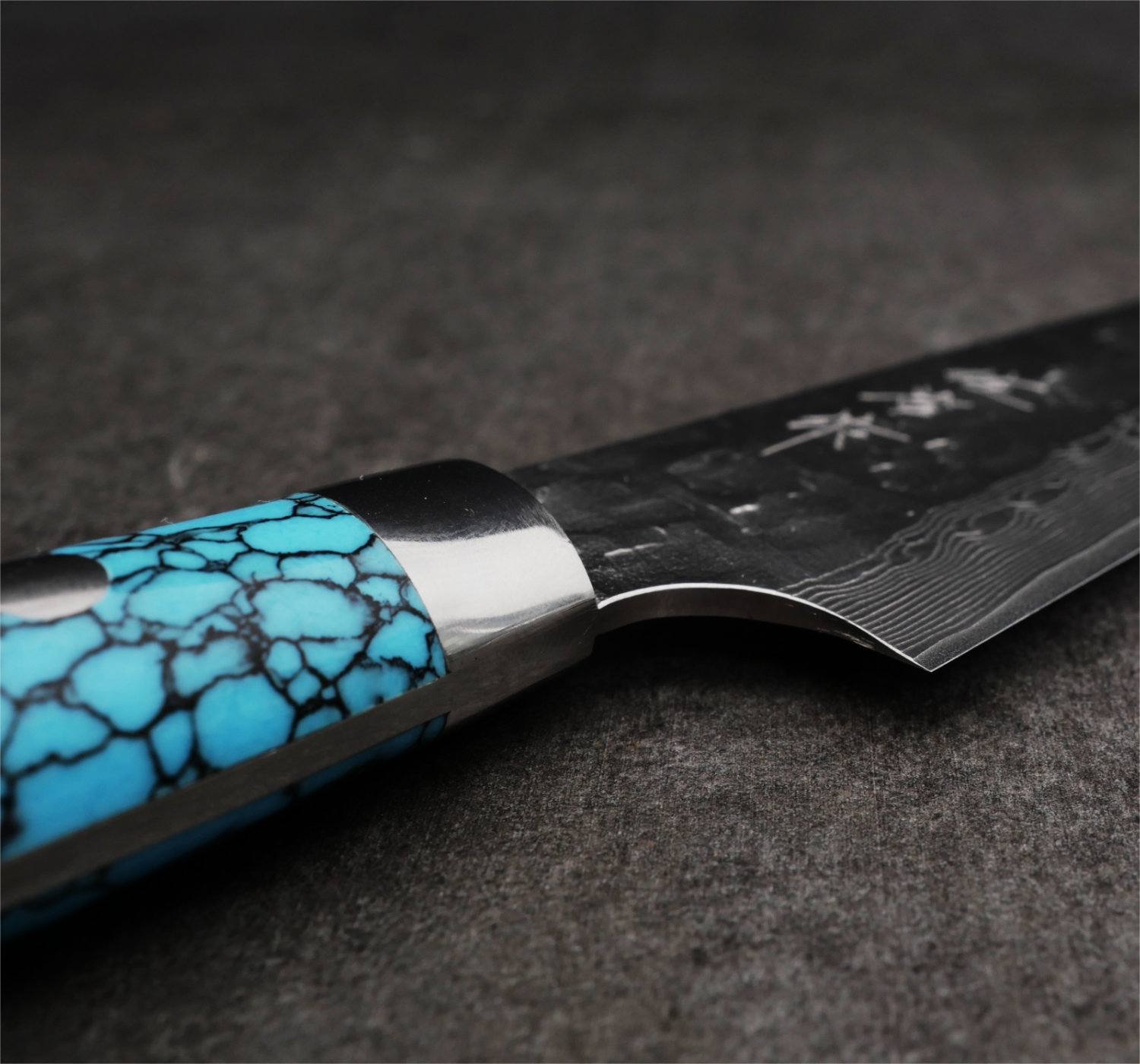 Den här lyxiga pjäsen tillverkas för hand i Sajis smedja i Takefu, Japan. Materialvalet är rostfritt VG-10 stål i kärnan som kläds i en kappa av vackert damaskusstål. Saji bär sedan länge den aktade titeln 'Dento Kogeishi', en titel som delas ut av den japanska staten till landets skickligaste hantverkare.