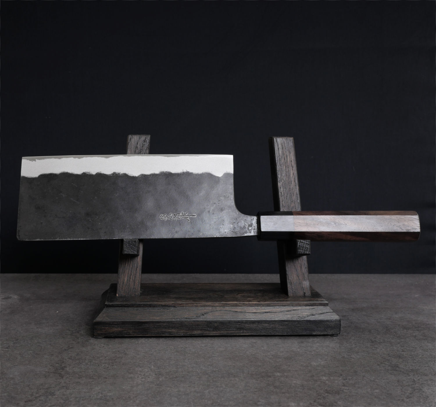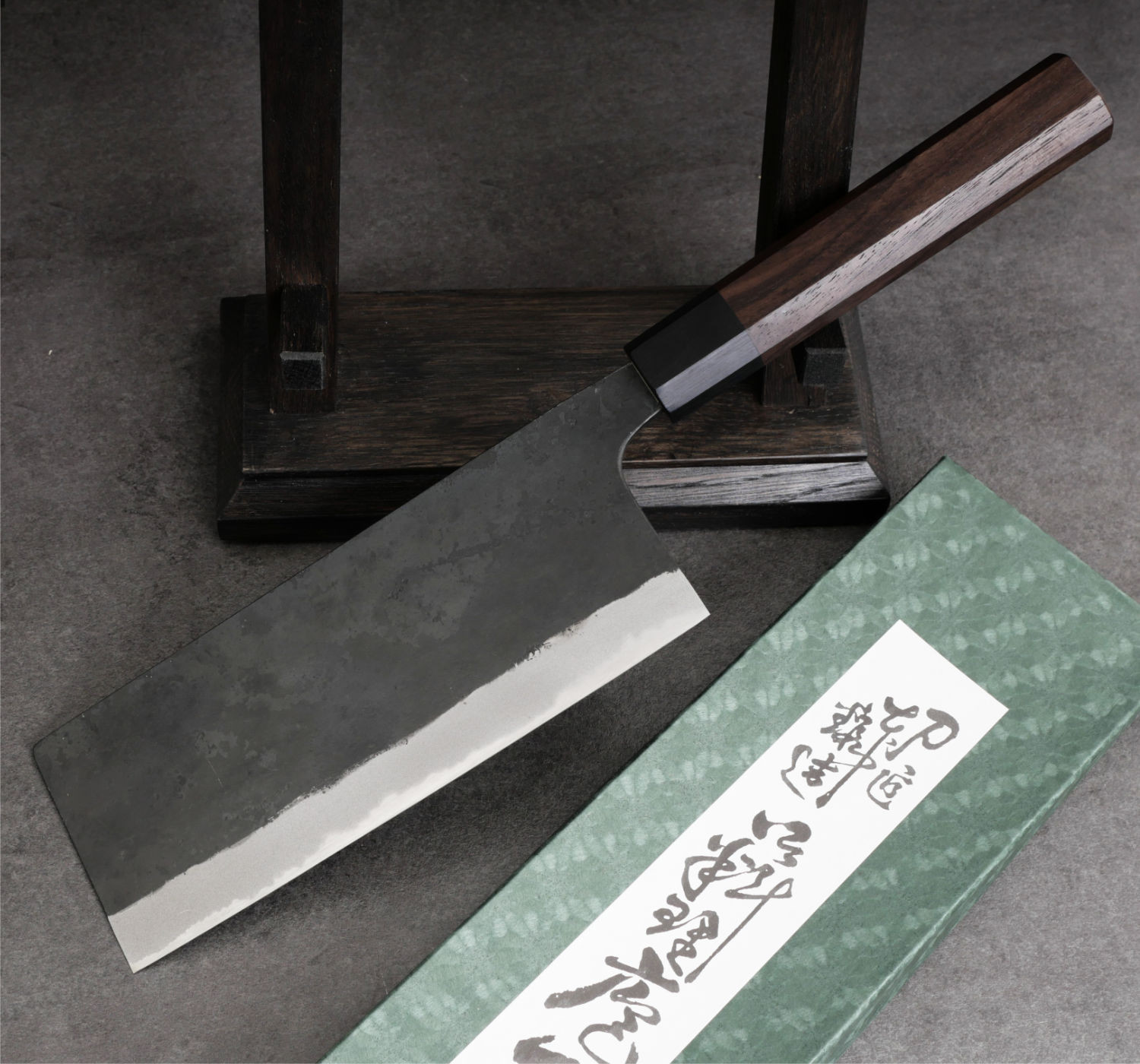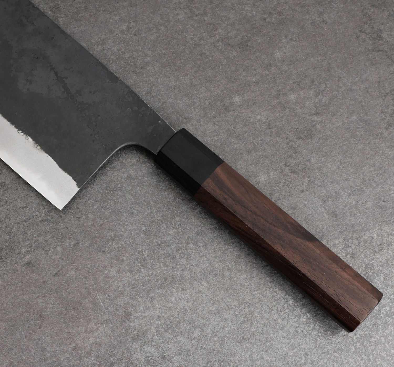 En robust och extra hög nakiri, smidd av Okada som är en välrenommerad smed från Takefu. Med ett helt liv vid ässjan är hans knivar uppskattade för sin funtionella kvalitet och spektakulära design.