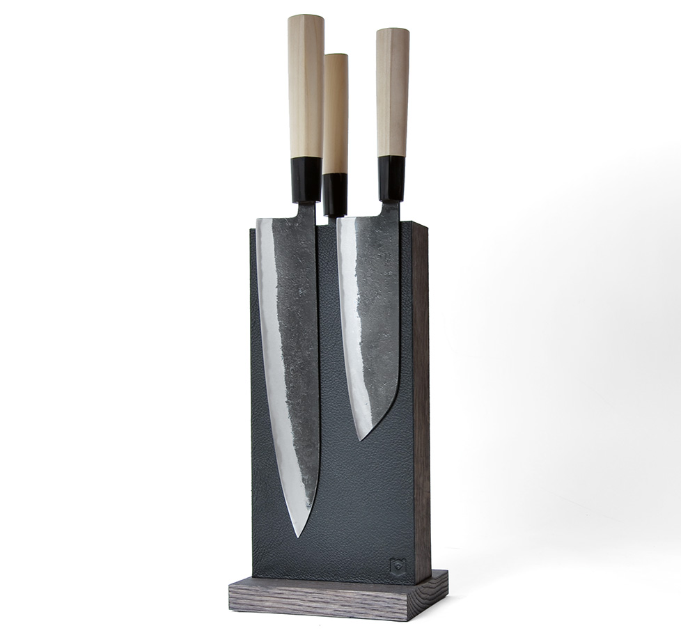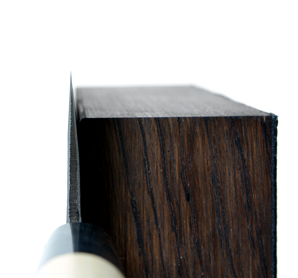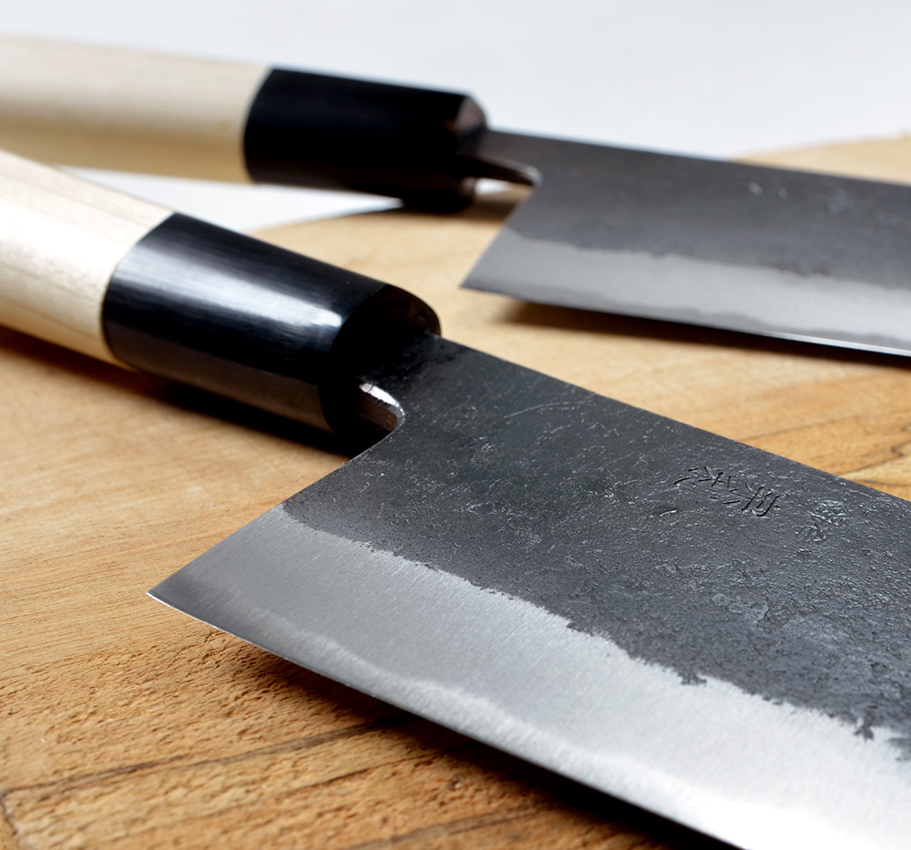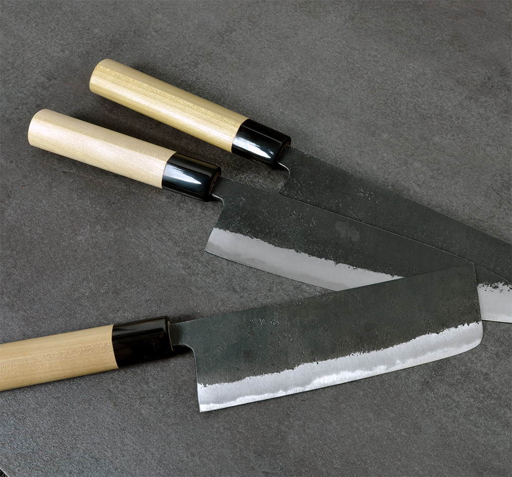 Munetoshi smider sina kolstålsknivar helt för hand och han arbetar främst med kolstålet shirogami#2. Utöver knivar tillverkar han även trädgårdsyxor och skäror. Hans filosofi ligger därför i att redskapet ska brukas och han fokuserar på att skapa klingor som skär bra och som är tåliga. Han lägger mindre tid på finishen och du kan förvänta dig en produkt som är rå i sin framtoning men som skär fantastiskt bra.