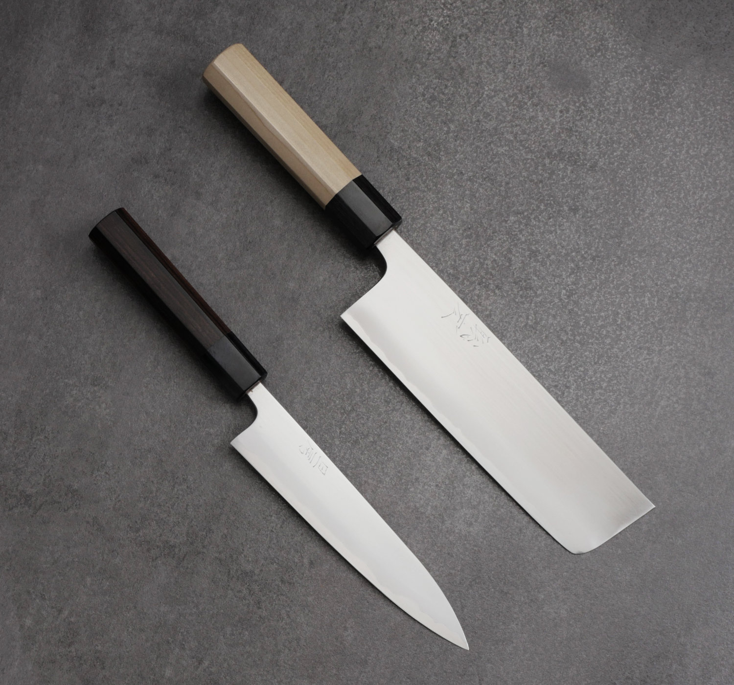 Wakui är en mycket talangfull smed som tillverkar vackra knivar i kolstål. Kärnstålet är Shirogami#2 som belagts med rostfritt stål i en 'hairline finish'. Handtaget är åttakantigt och tillverkas av HO-trä, med bolster i buffelhorn. Wakui kommer från staden Sanjo i västra Japan, en stad med många kända smeder såsom Yoshikane och Shigefusa. Man kan faktiskt se tydliga likheter mellan Wakuis och Shigefusas blad i det omsorgsfulla smidet. Wakui taperar bladen med stor skicklighet, ryggen är väl avrundad för att ligga skönt i handen och framför allt är eggen mycket tunn och vass. Det här är en kniv som uppvisar den högsta formen av smide och finish. En superkniv!