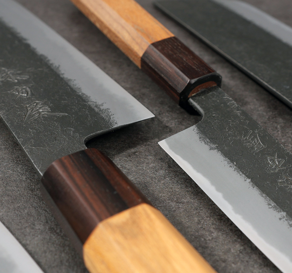 Som avslutning har den tunna och fina eggen försetts med en mycket vacker kasumifinish. Kasumi är en dimmig och silkeslen finish som förhöjer kontrasten mellan det blanka kärnstålet och det utanpåliggande mjukare lagret. Det är få knivar som levereras med så vacker finish på bladet.