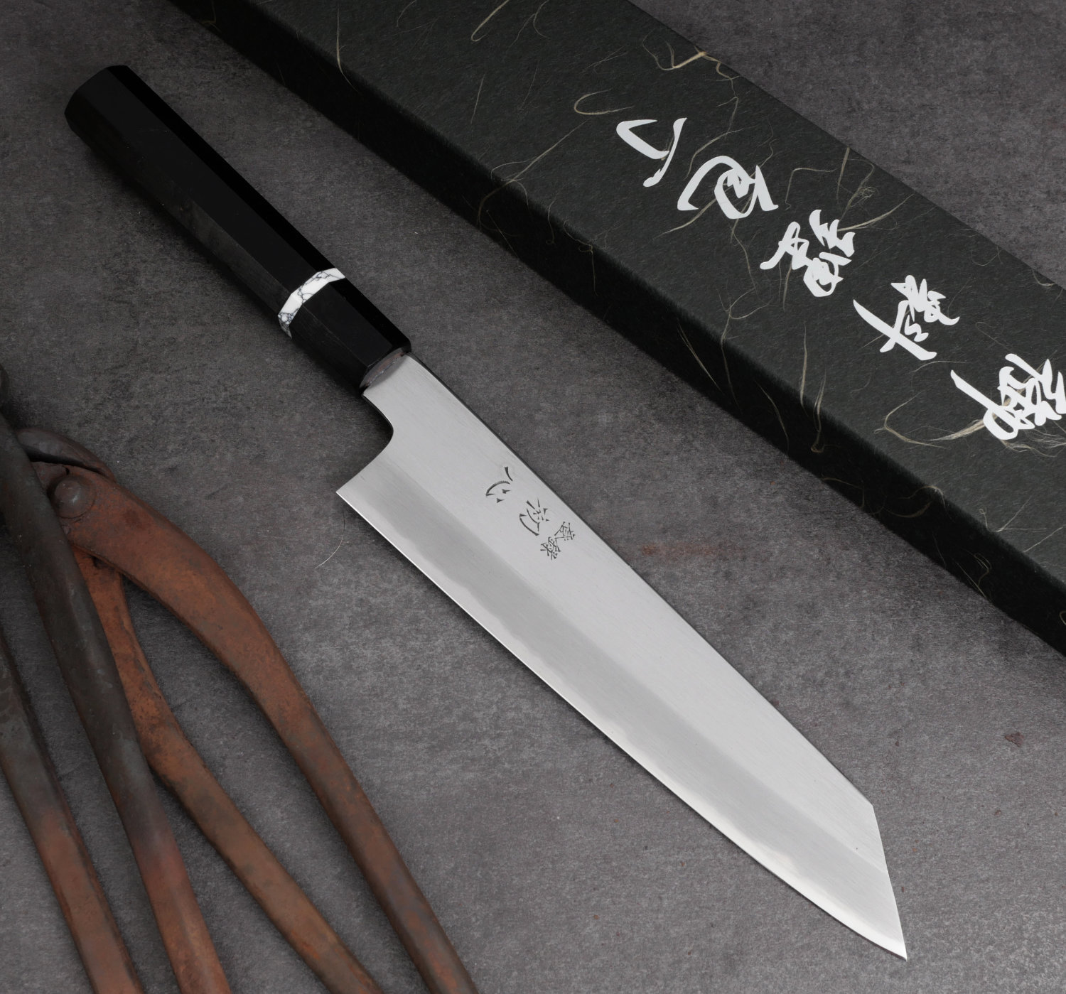 En mycket speciell kniv som tillverkas av Satoshi Nakagawa, en av de skickligaste smederna i Sakai, Japan. Efter att ha arbetet 16 år som smed hos Shiraki har Nakagawa blivit 'independent' och bestämmer själv över formgivning och produktionsmetoder. Han smider sina blad enligt klassisk japansk smidesteknik och klingan håller högsta tänkbara kvalitet. Kniven har behaglig tyngd och ligger som gjuten i handen. Själva eggen är mycket tunn och kniven skär fantastiskt bra.