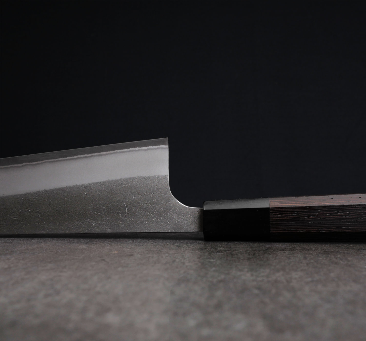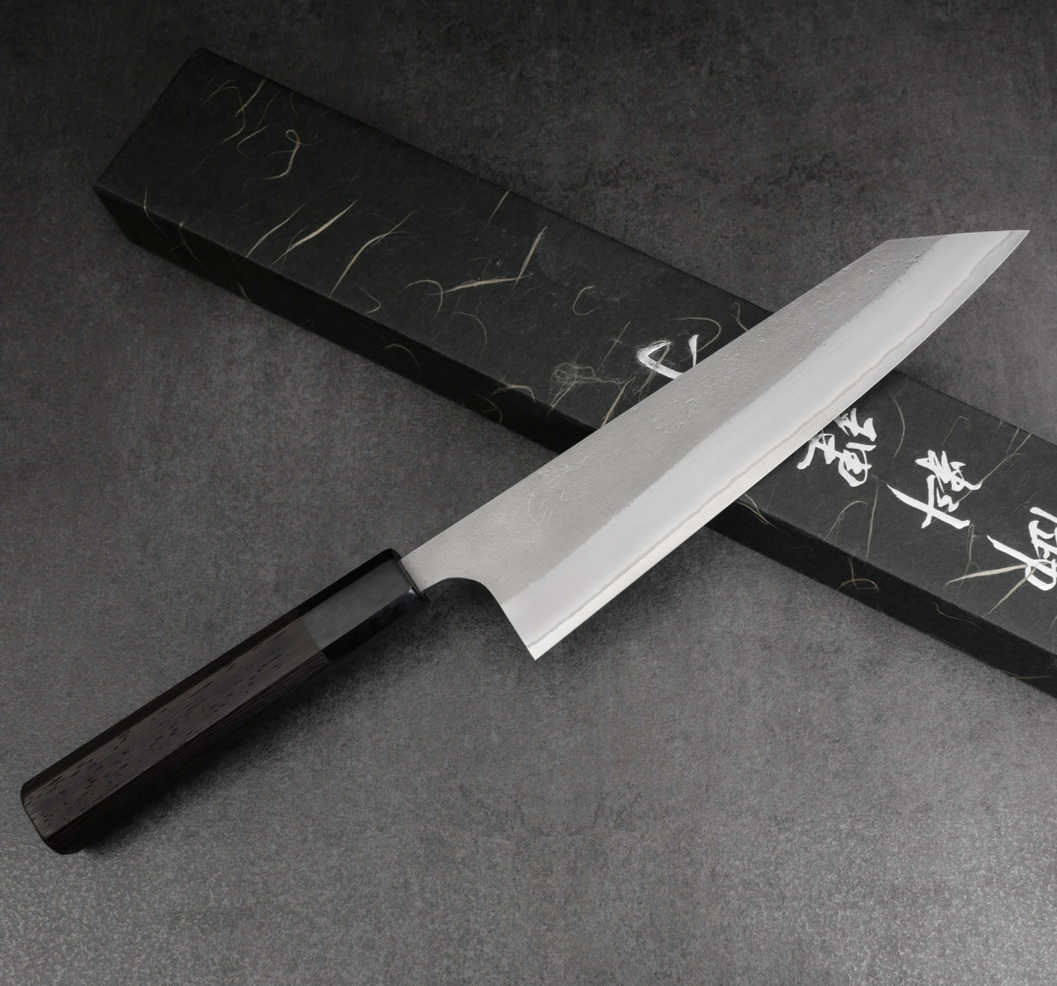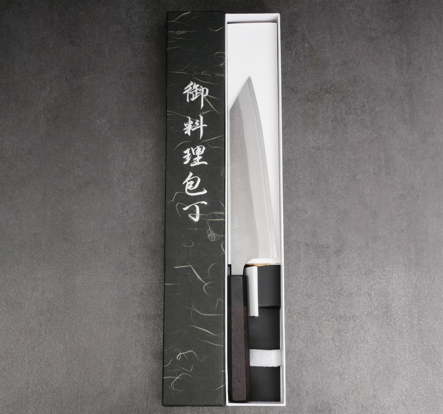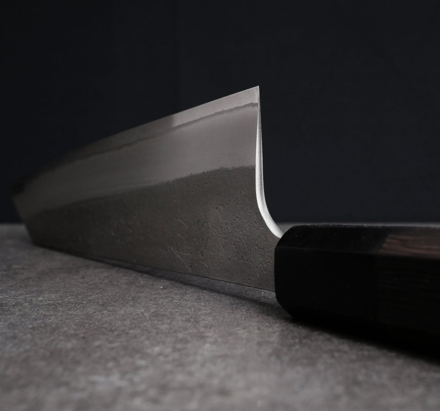Kiritsuke (kockkniv) med 21 cm långt blad och ett extra högt blad.
