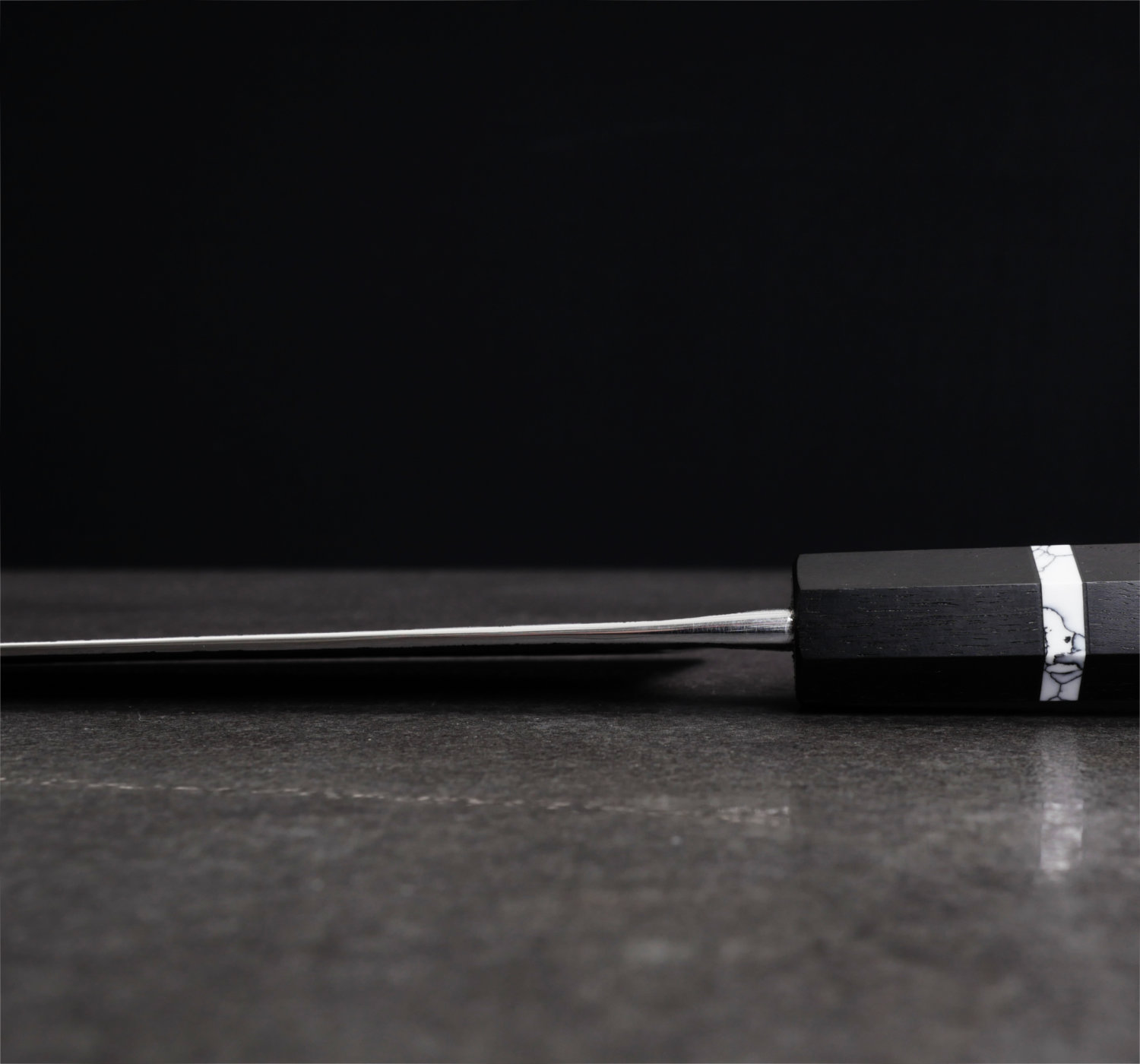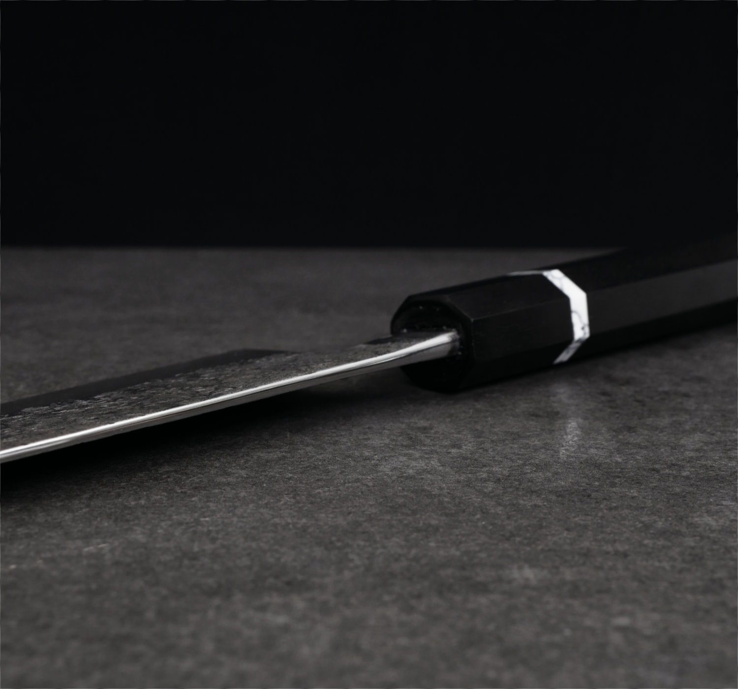 Skaftet är åttakantigt, tillverkat av svart ebenholts med en vit spacer.