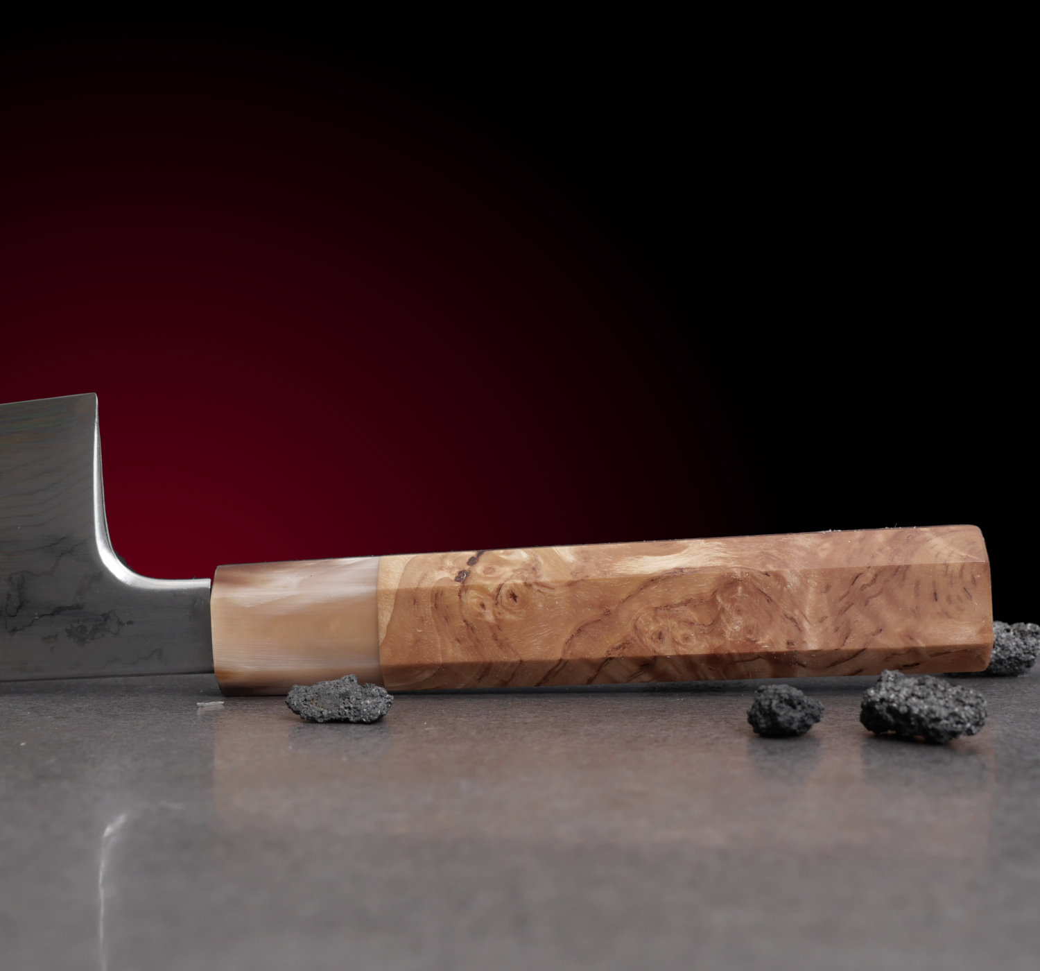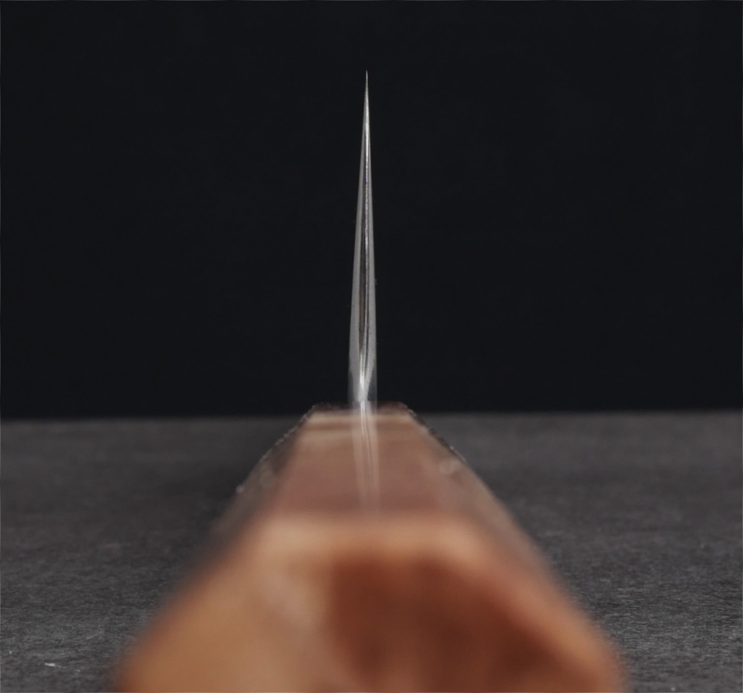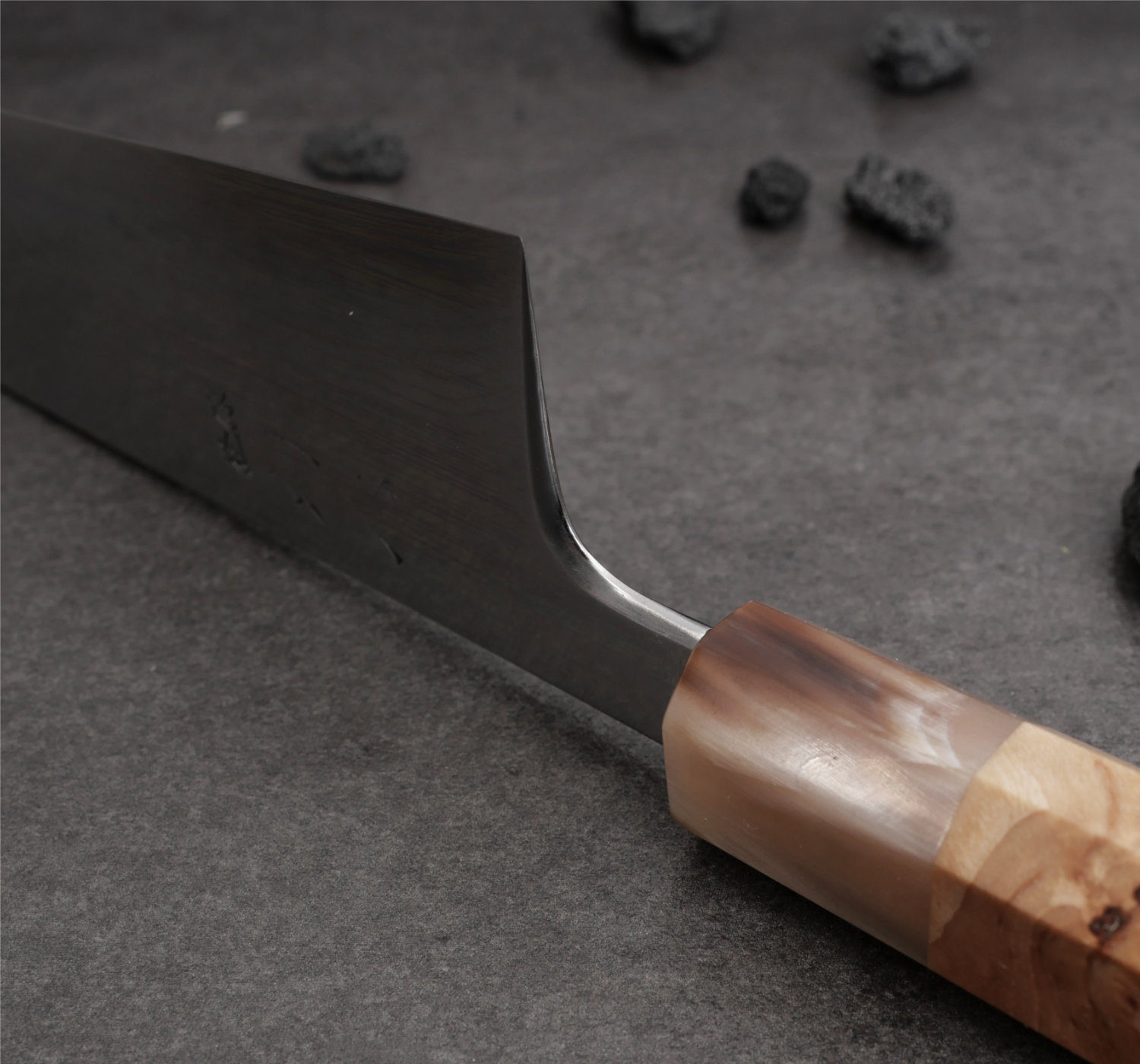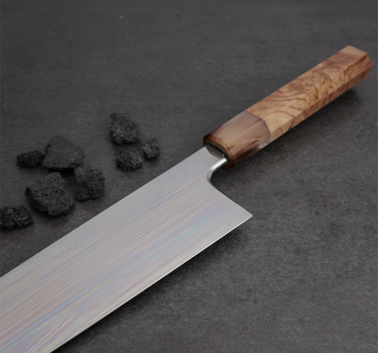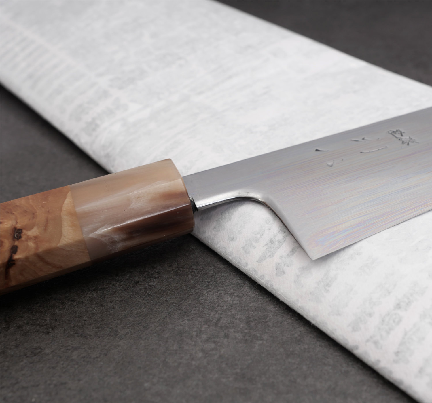 Det ska dock sägas att kniven inte är för alla. Den går in i katergorin 'workhorse' då vikten är ordentlig och bladet är stabilt. Kniven har en traditionell japansk hamaguri grind. Det är en konvex slipning som ger fantastisk skäreffektivitet. Kniven löper bra genom råvaror trots att bladet har mer massa än den genomsnittliga japanska kniven.