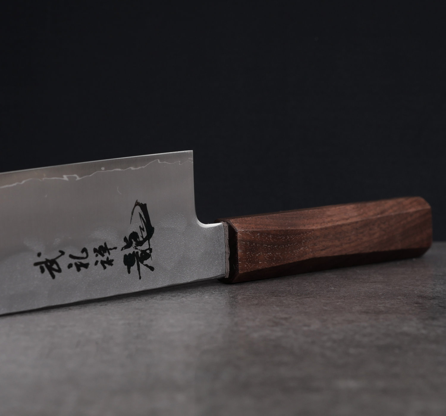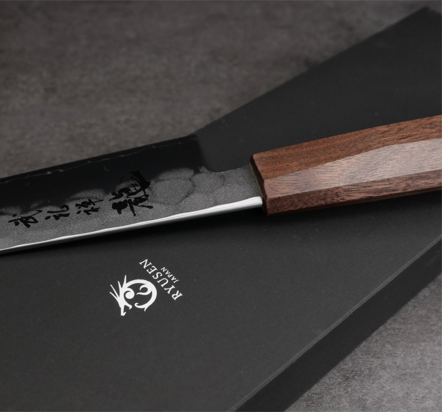 Ryusen Blazen levererar prestanda på absolut högsta nivå. Bladet består av pulverstålet SG2 som smids för hand till perfektion. Bladet är taperat (kilformat) vilket innebär att kniven får styrka närmast bolstret och smalnar av mot spetsen. Det ger en kockkniv med sagolik balans och oöverträffade skäregenskaper. Det är är en kniv i premiumnivå för riktigt kräsna kockar.