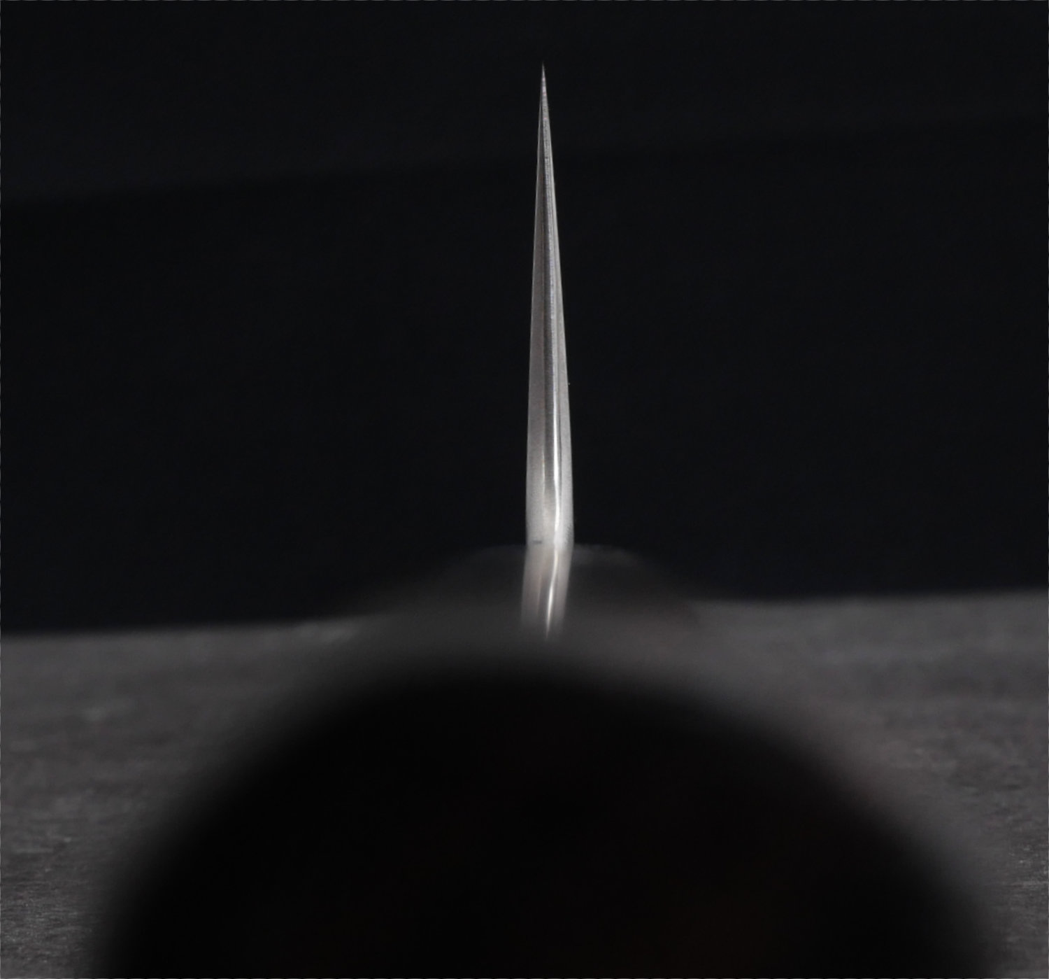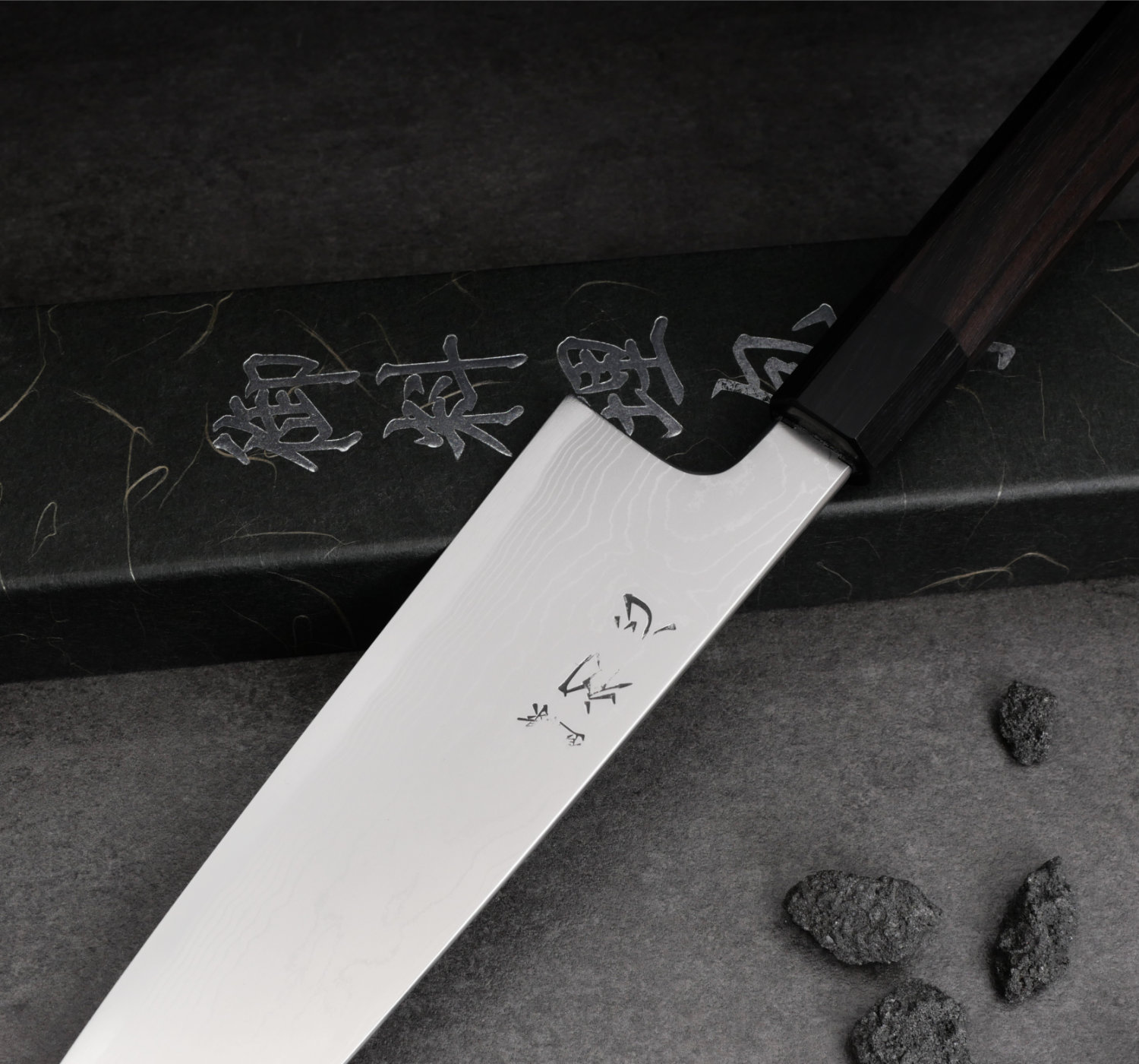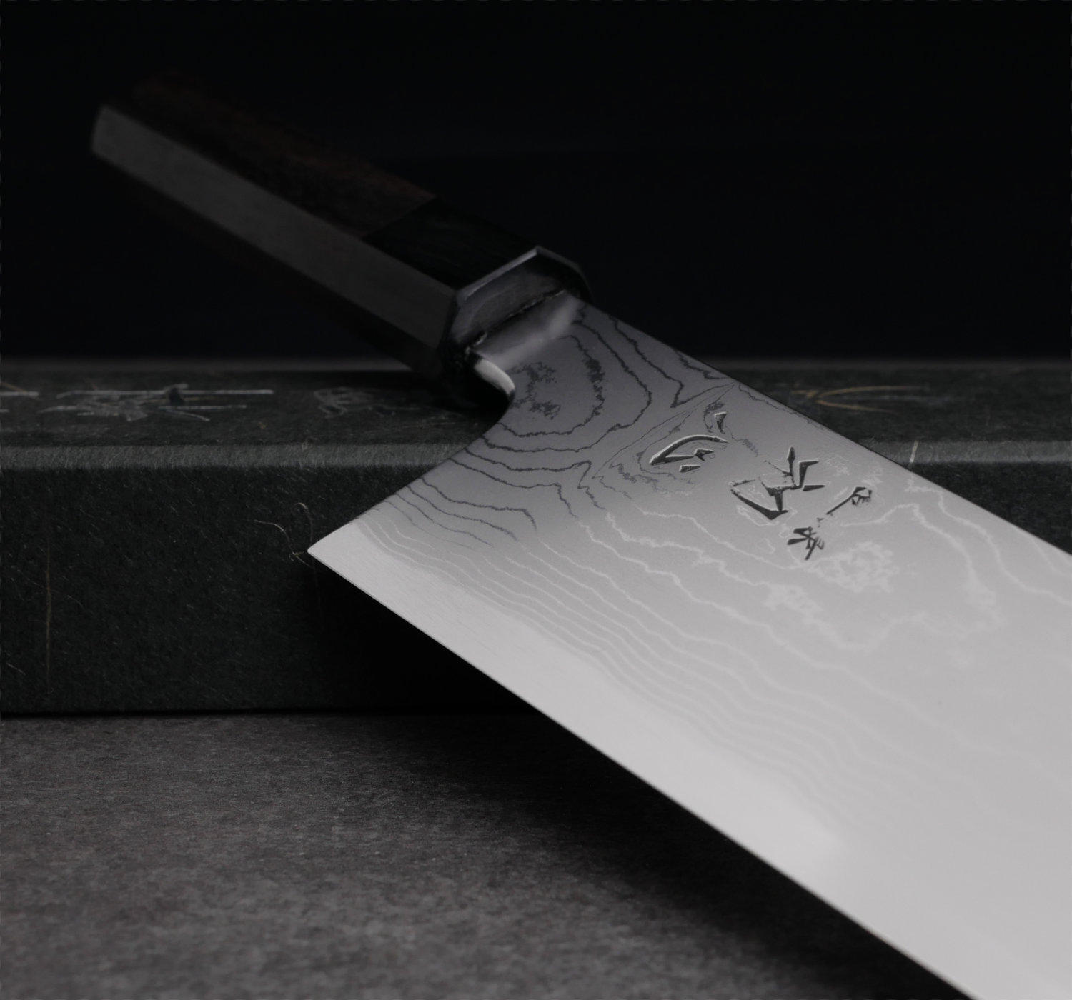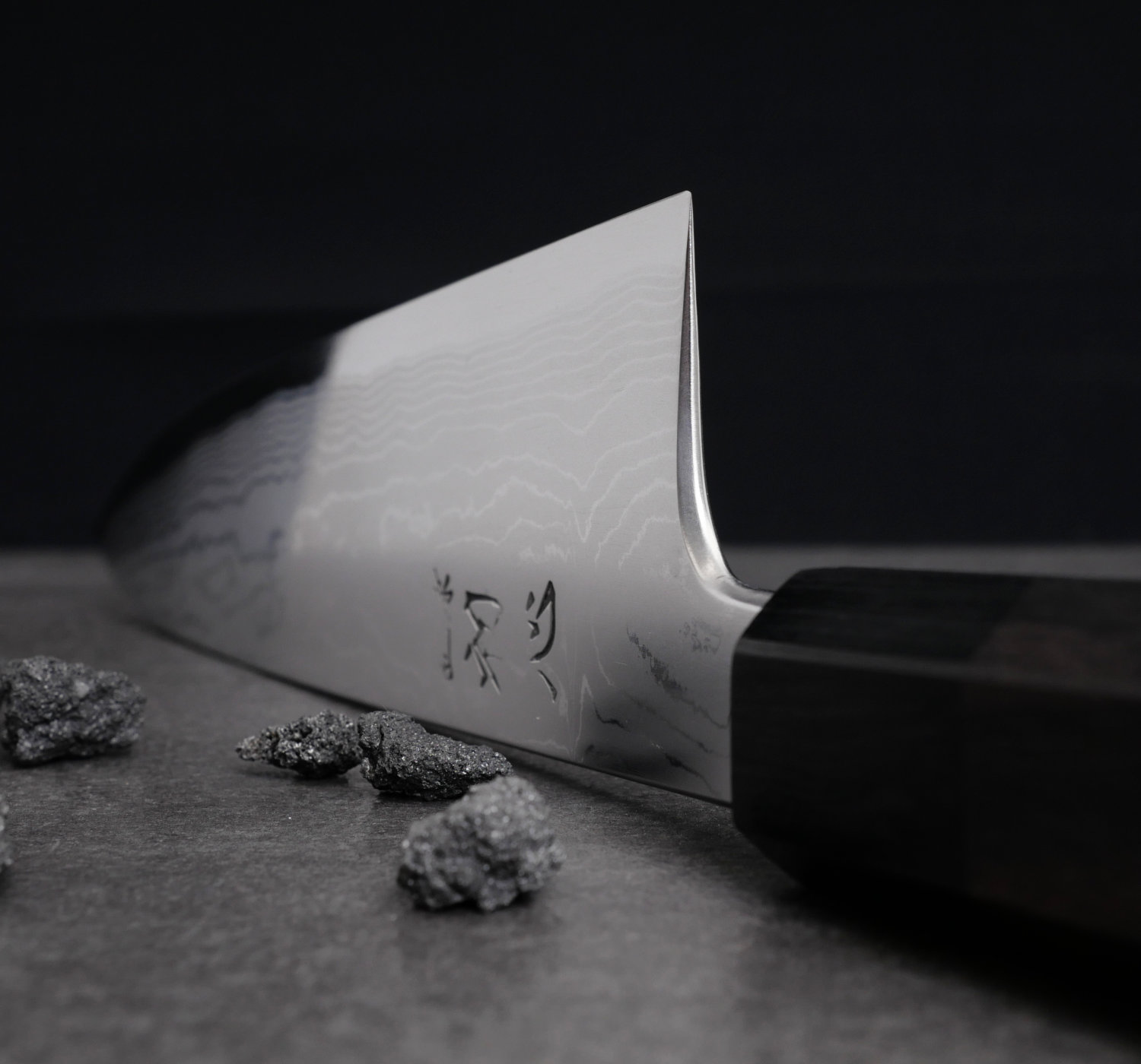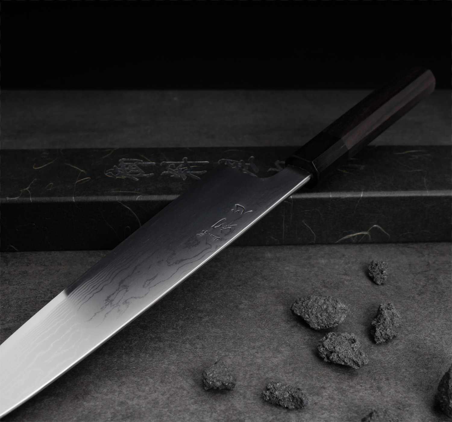 Det ska dock sägas att kniven inte är för alla. Den går in i kategorin 'workhorse' då vikten är ordentlig och bladet stabilt. Kniven har en traditionell japansk hamagur. Det är en konvex slipning som ger fantastisk skäreffektivitet. Kniven löper bra genom råvaror trots att bladet har mer massa än den genomsnittliga japanska kniven.