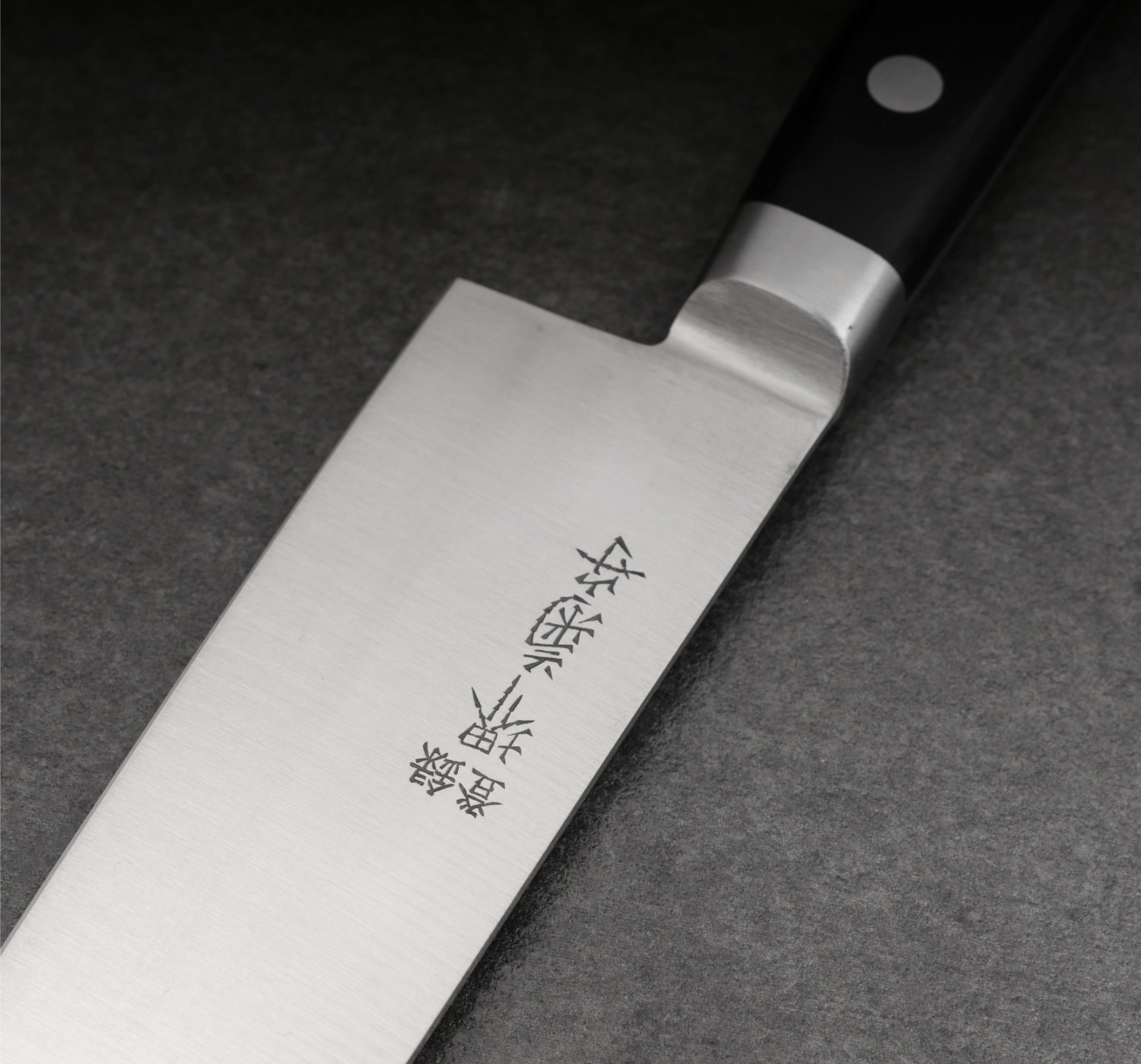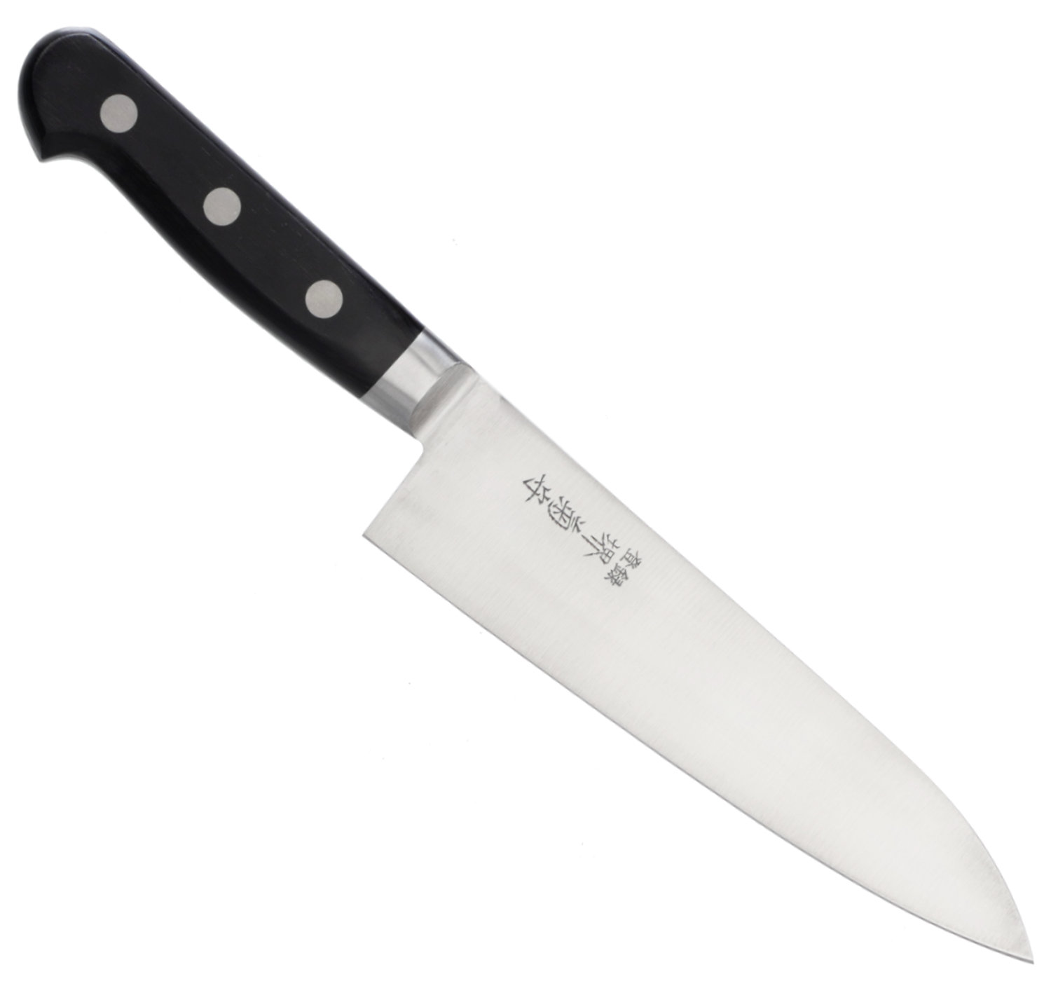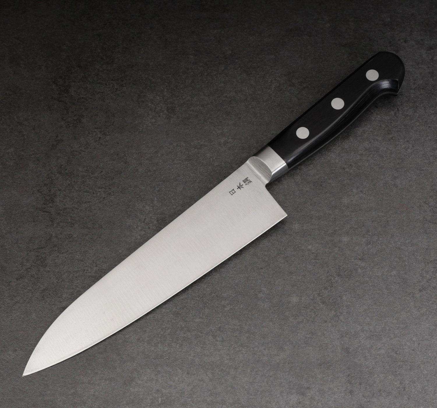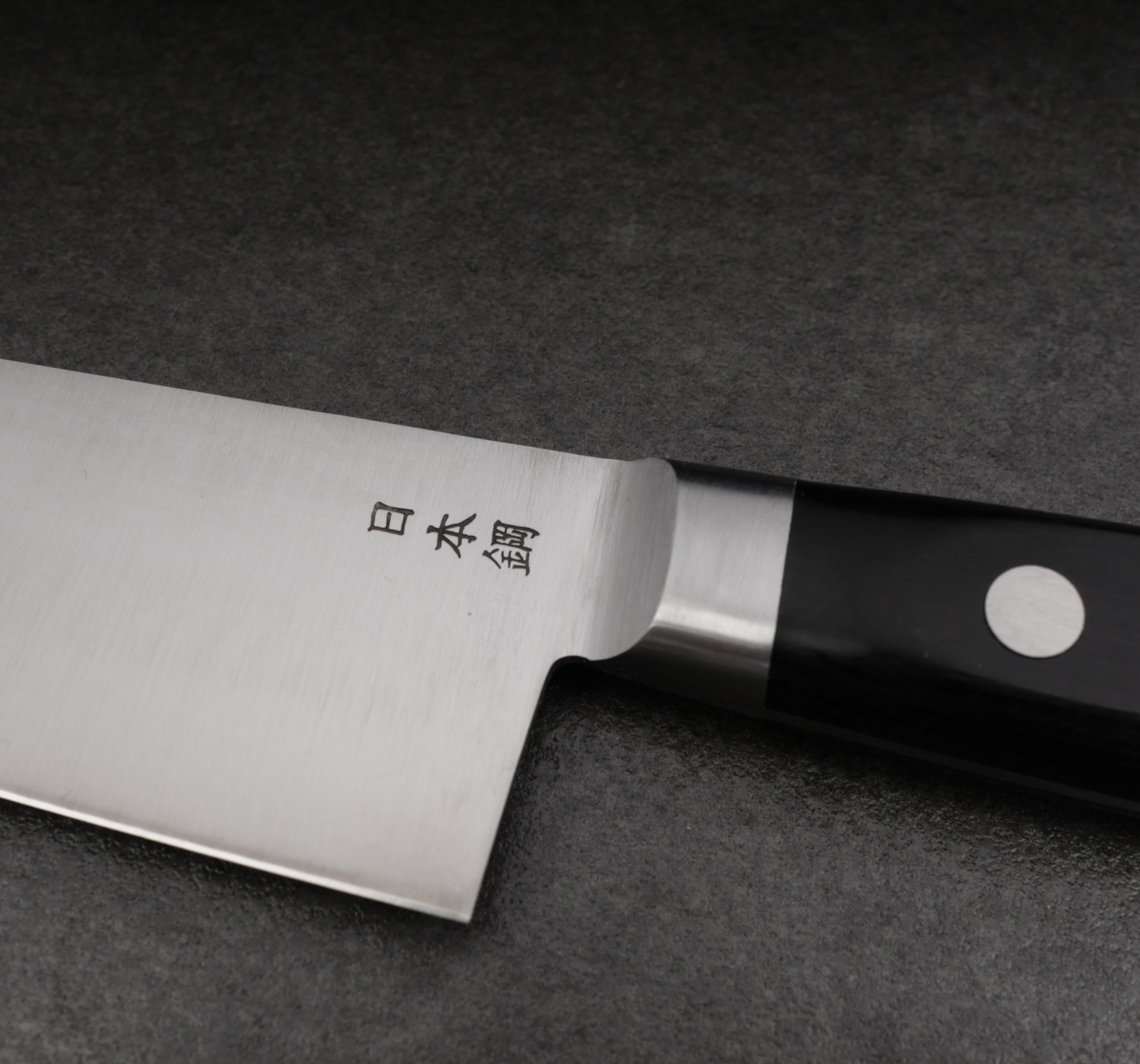Kockkniv i kolstålet SK-4. Den är inte rostfri och behöver hållas torr för att inte rosta över tid. I gengäld får den vacker patina på bladet och kniven är enkel att slipa. Den passar bra både som första riktiga kniv och som professionellt redskap för den erfarne kockken.