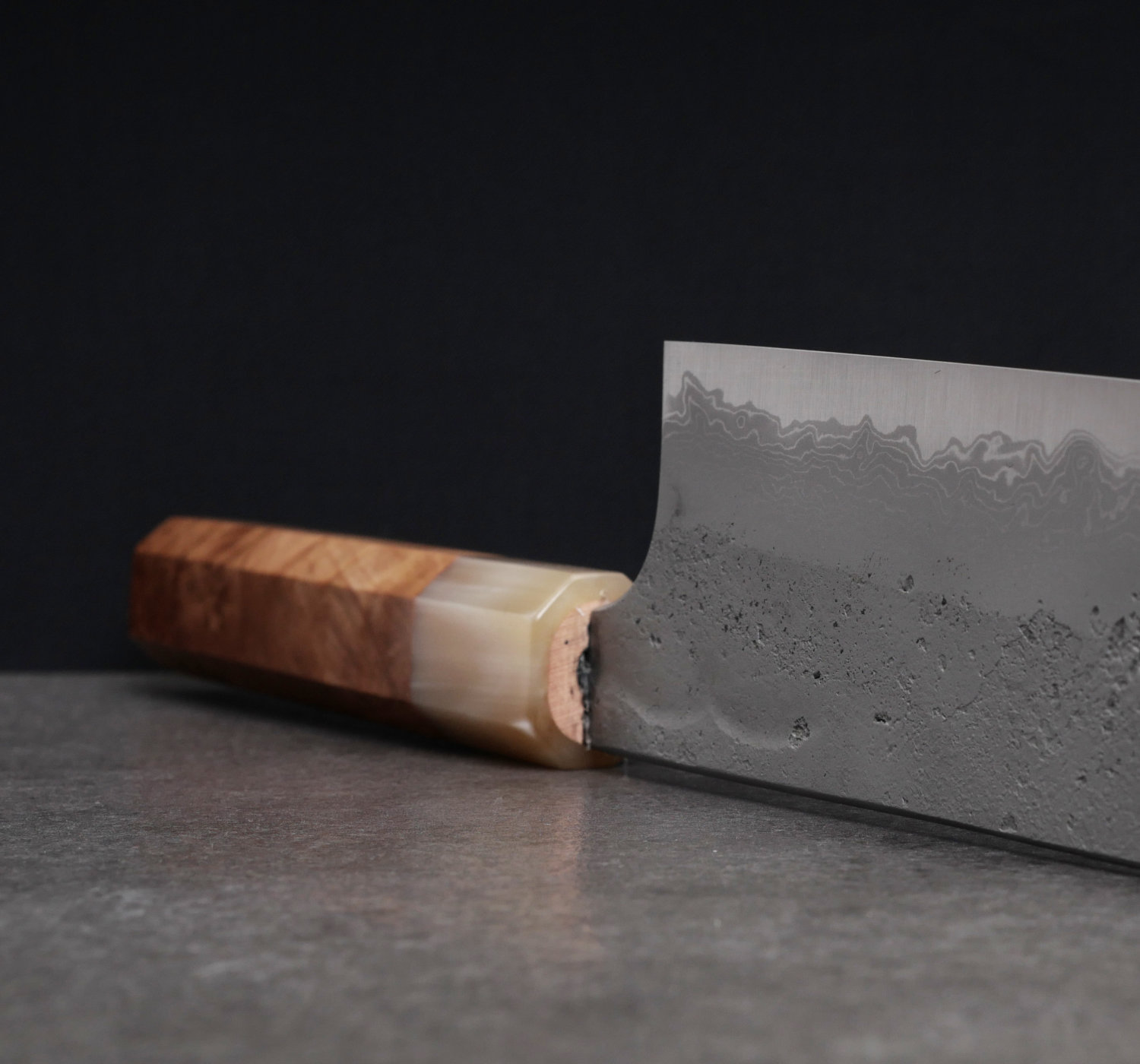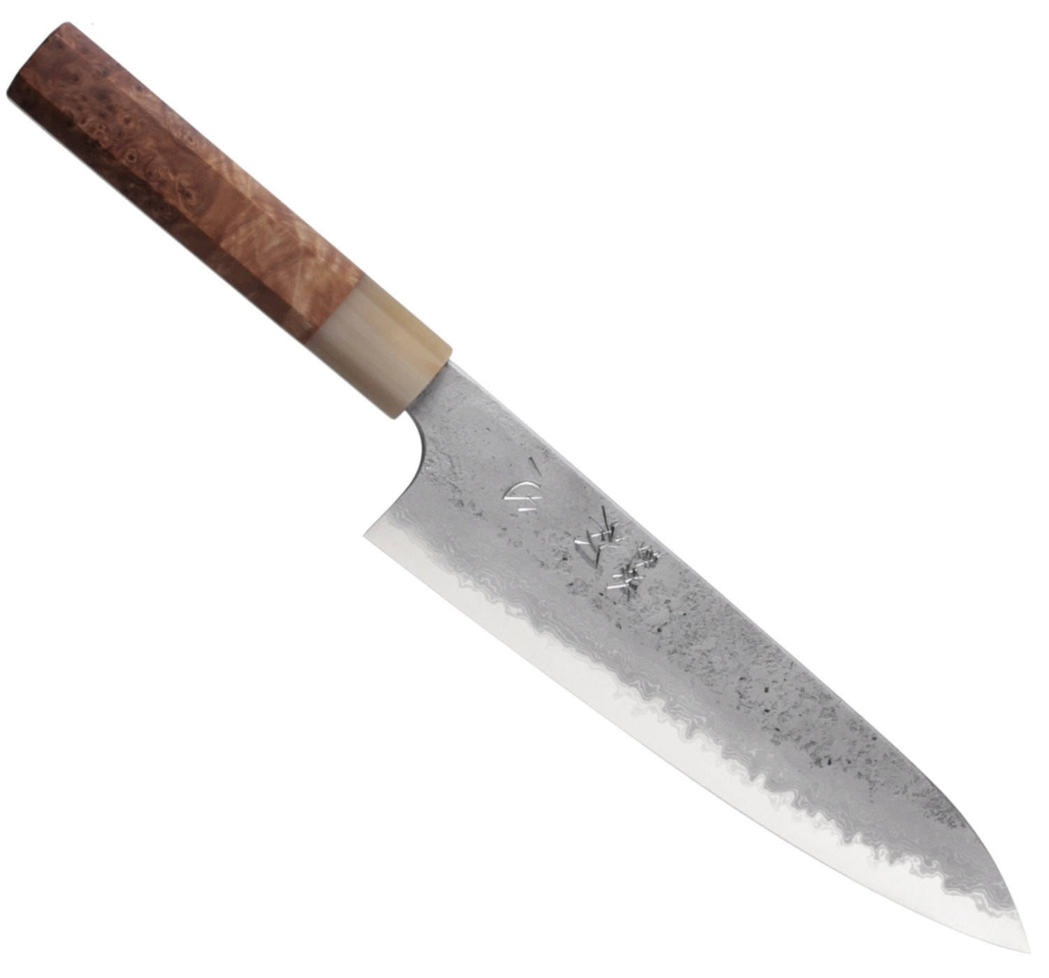 En japansk kockkniv med 195 mm långt blad, med kraft, precision och elegans.