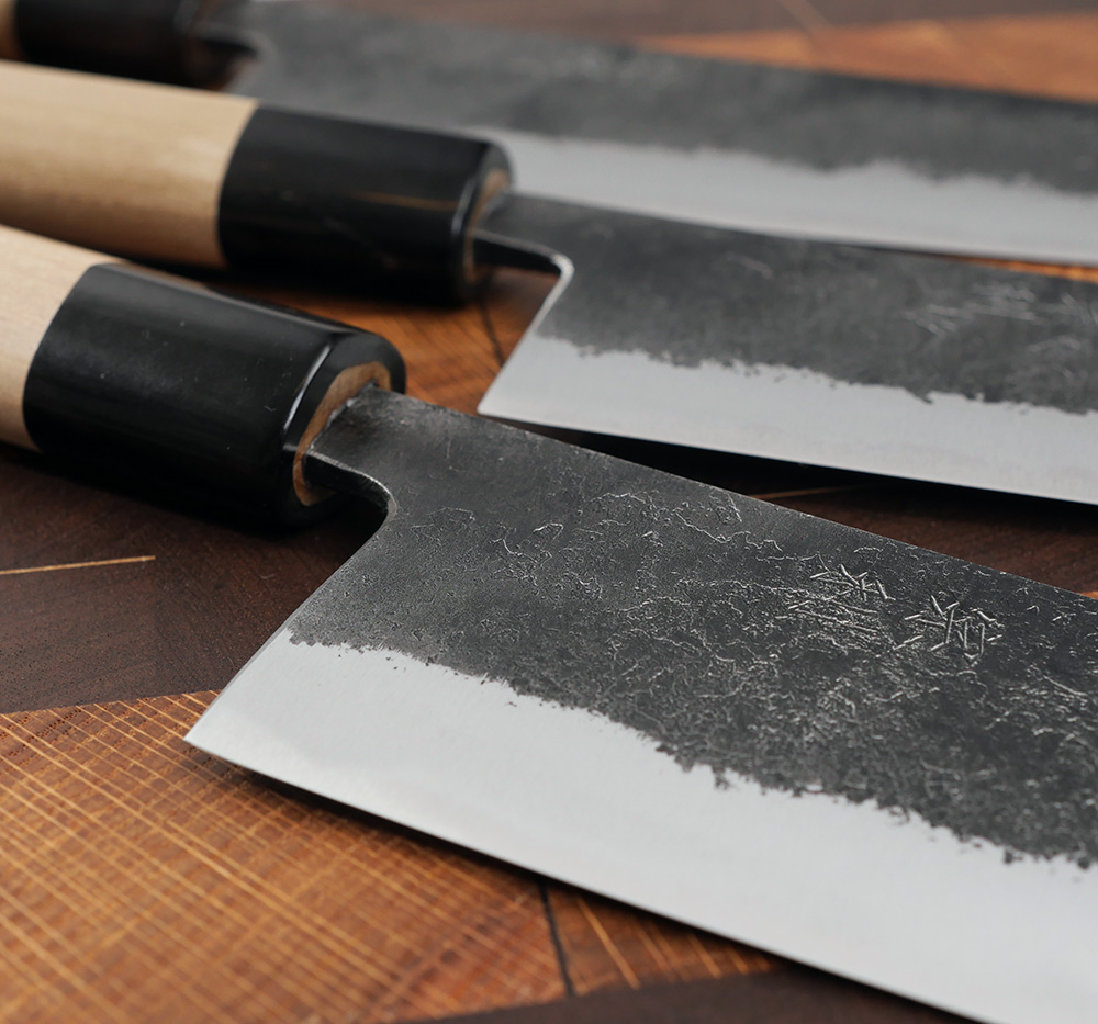Munetoshi smider sina kolstålsknivar helt för hand och han arbetar främst med kolstålet shirogami#2. Utöver knivar tillverkar han även trädgårdsyxor och skäror. Hans filosofi ligger därför i att redskapet ska brukas och han fokuserar på att skapa klingor som skär bra och som är tåliga. Han lägger mindre tid på finishen och du kan förvänta dig en produkt som är rå i sin framtoning men som skär fantastiskt bra.