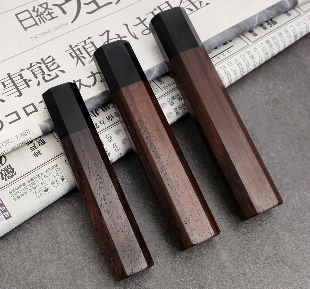 Detta är ett högkvalitativt skaft i mörk rosenträ. Skaftet har ett bolster i svart pakkaträ och klassisk åttakantig form.