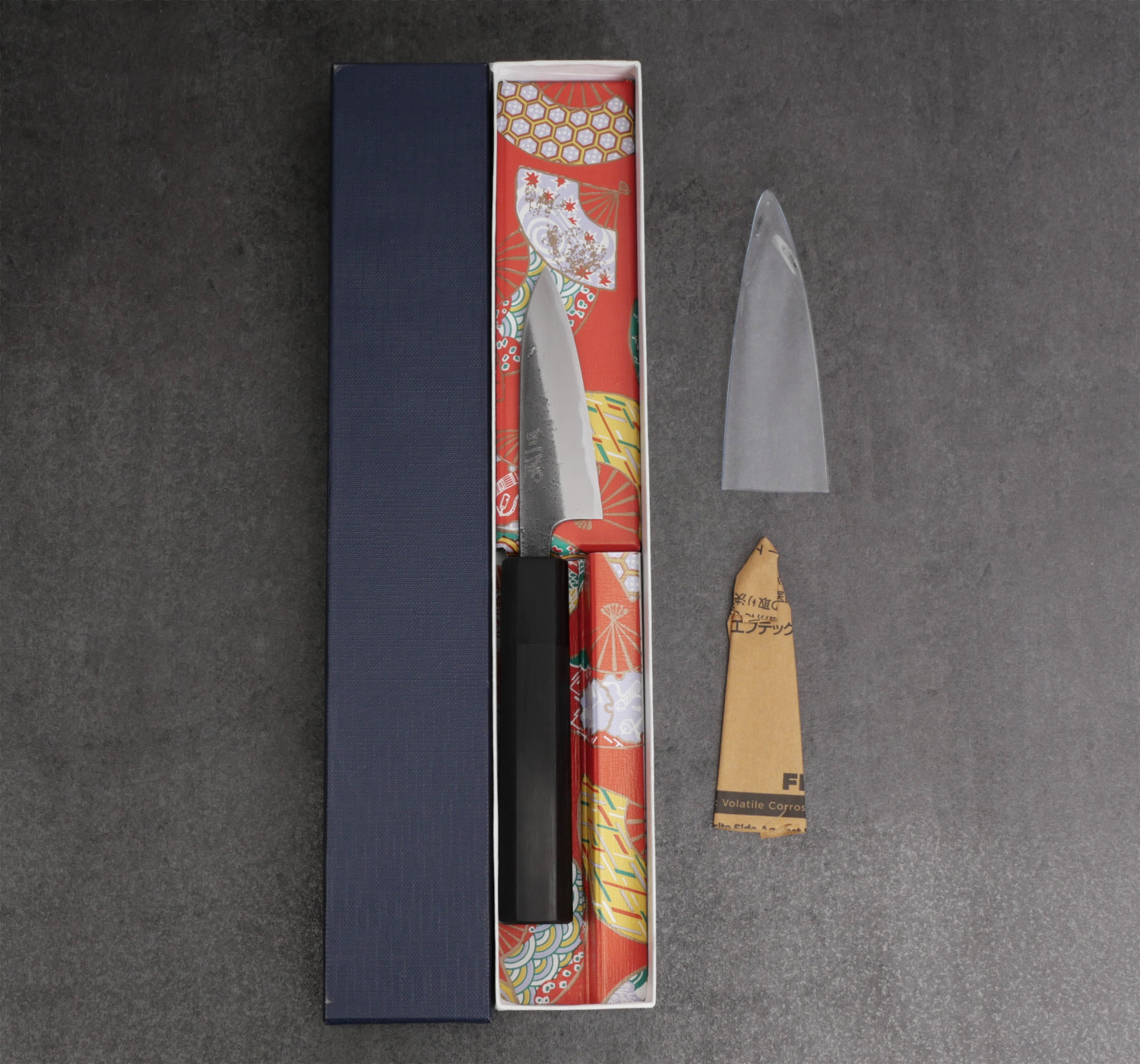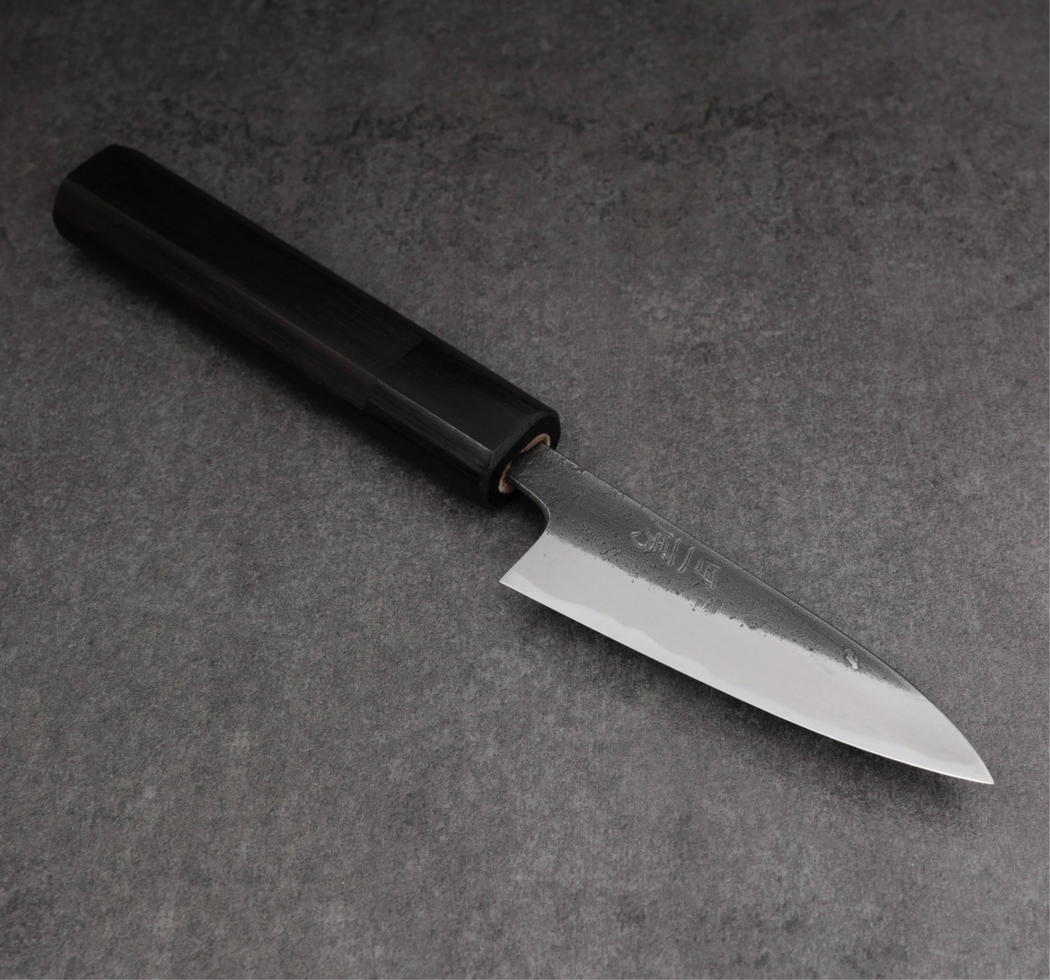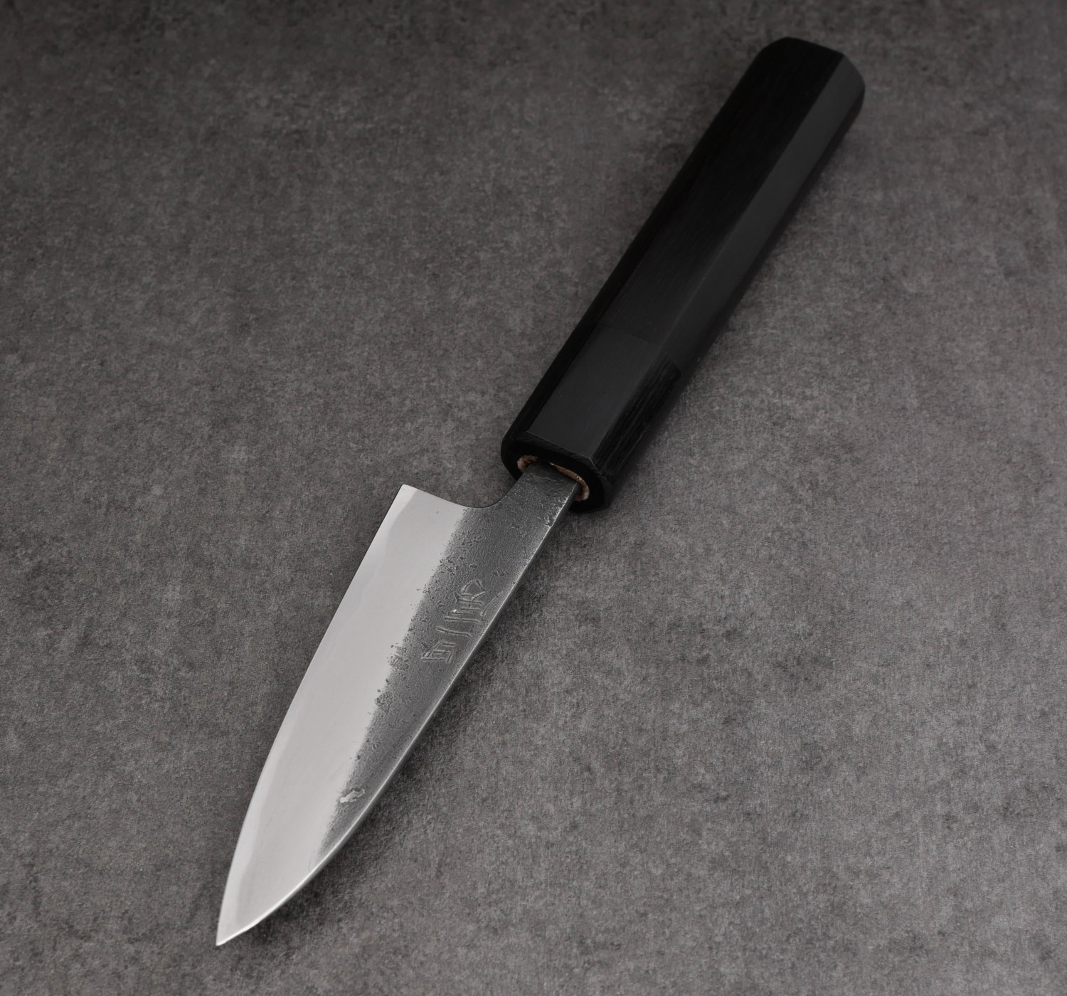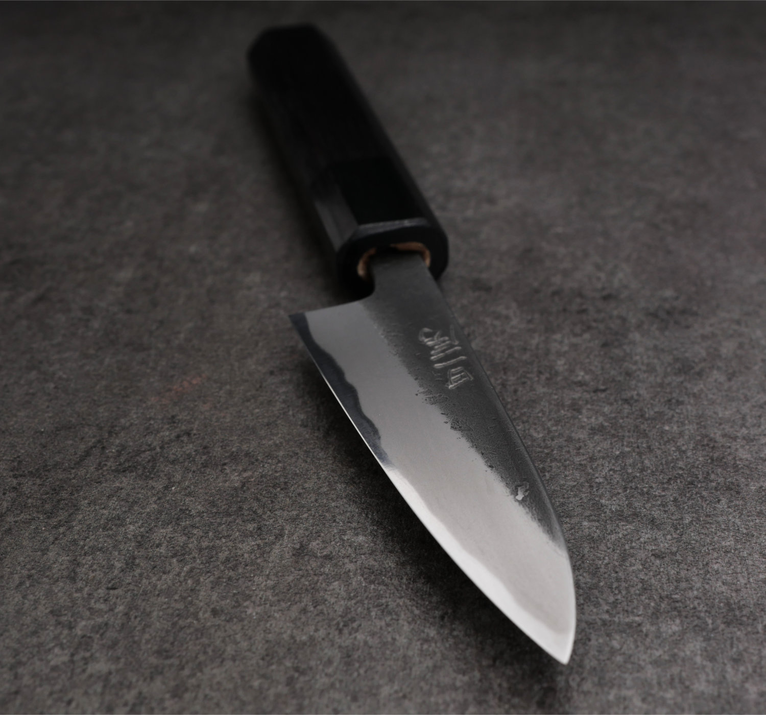 Aogami#2 är ett kolstål som inte är rostfritt. Var försiktig när du använder kniven eftersom den tunna och mycket hårda eggen lätt kan ta skada om du hackar i hårdare partiklar.