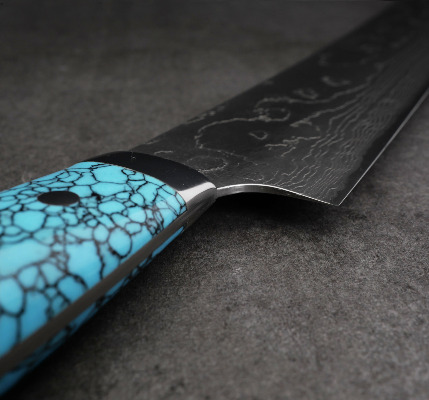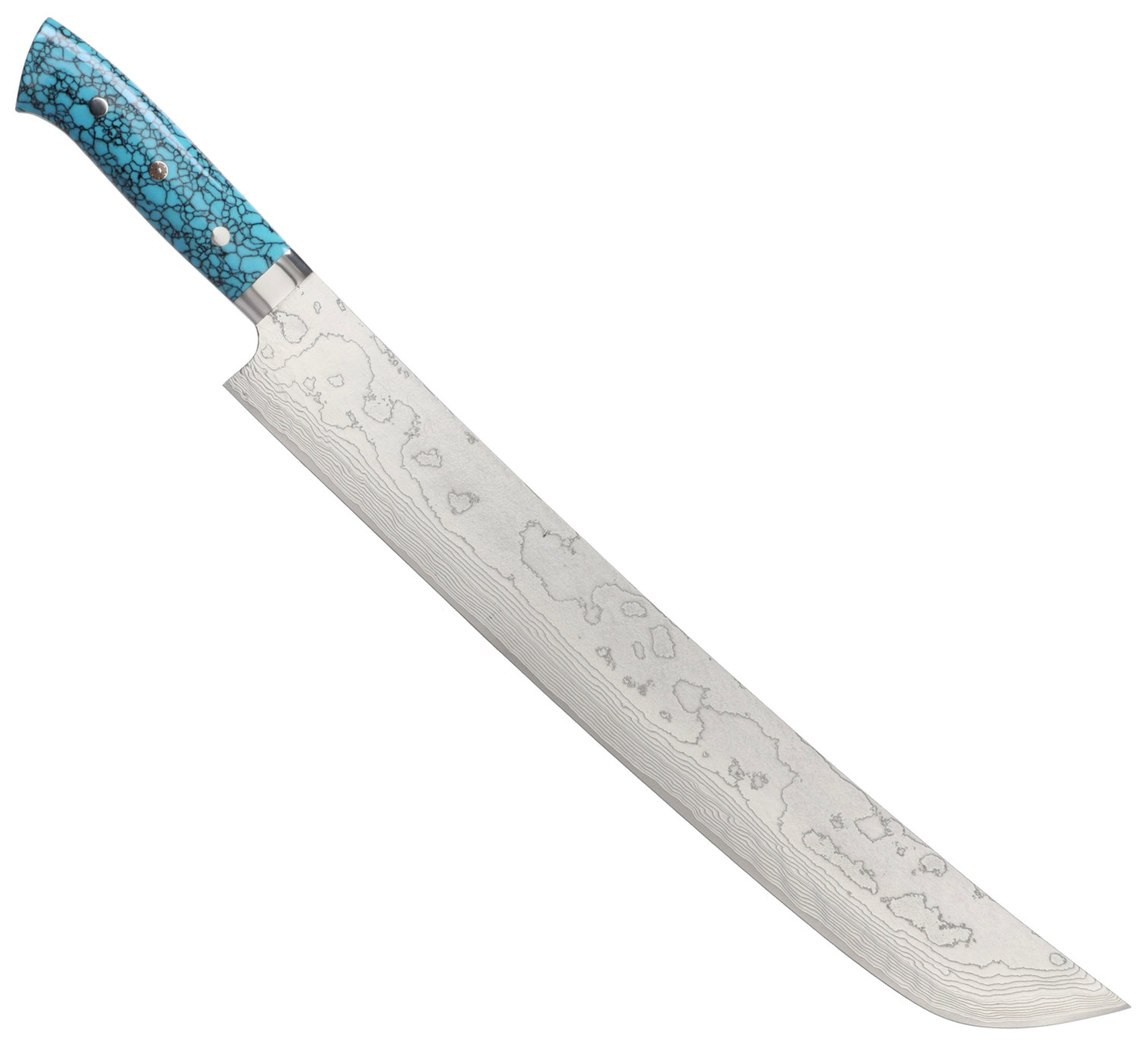 Vilket svärd! Ett unikt mästerverk från Takeshi Saji - Slicer med imponerande 405 mm långt blad i vacker damaskusstål.
