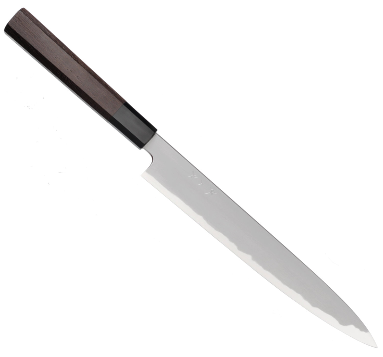 En nätt och smidig sujihiki med 232 mmm långt blad (mätt från spets till häl). Den är lite kortare än den klassiska sujihikin. Eggen är väldigt tunn och kniver har mycket hög fit and finish. Den ligger som en dröm i handen och är mycket vacker att se på.