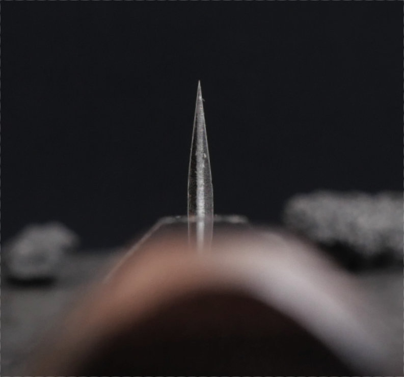 Aogami#2 är ett kolstål som inte är rostfritt. Var försiktig när du använder kniven eftersom den tunna och mycket hårda eggen lätt kan ta skada om du hackar i hårdare partiklar.