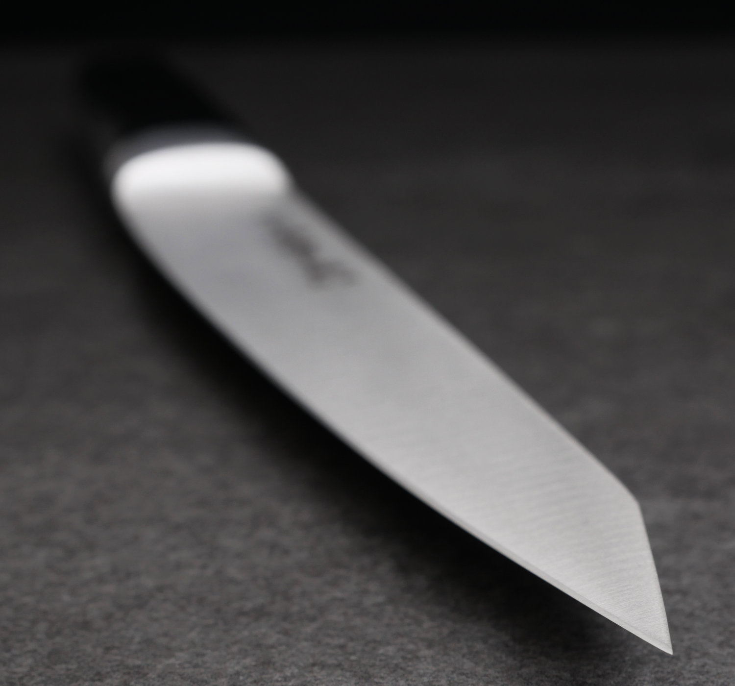 Eggen är slipad halvvägs, vilket gör att du kan skära och finhacka med den främre delen av bladet, medan den bakre delen, närmast skaftet, är riktigt robust. Det ger dig möjlighet att trycka, bända och vrida utan att bladet går sönder eller att du skär dig på eggen. Honesuki som modell är en traditionell japansk urbeningskniv, designad för exakt kontroll när man styckar fågel, kött eller gör mer detaljerat arbete. Med sin distinkta triangelformade profil och skarpa spets är den byggd för att följa ben, leder och hinnor med imponerande precision.