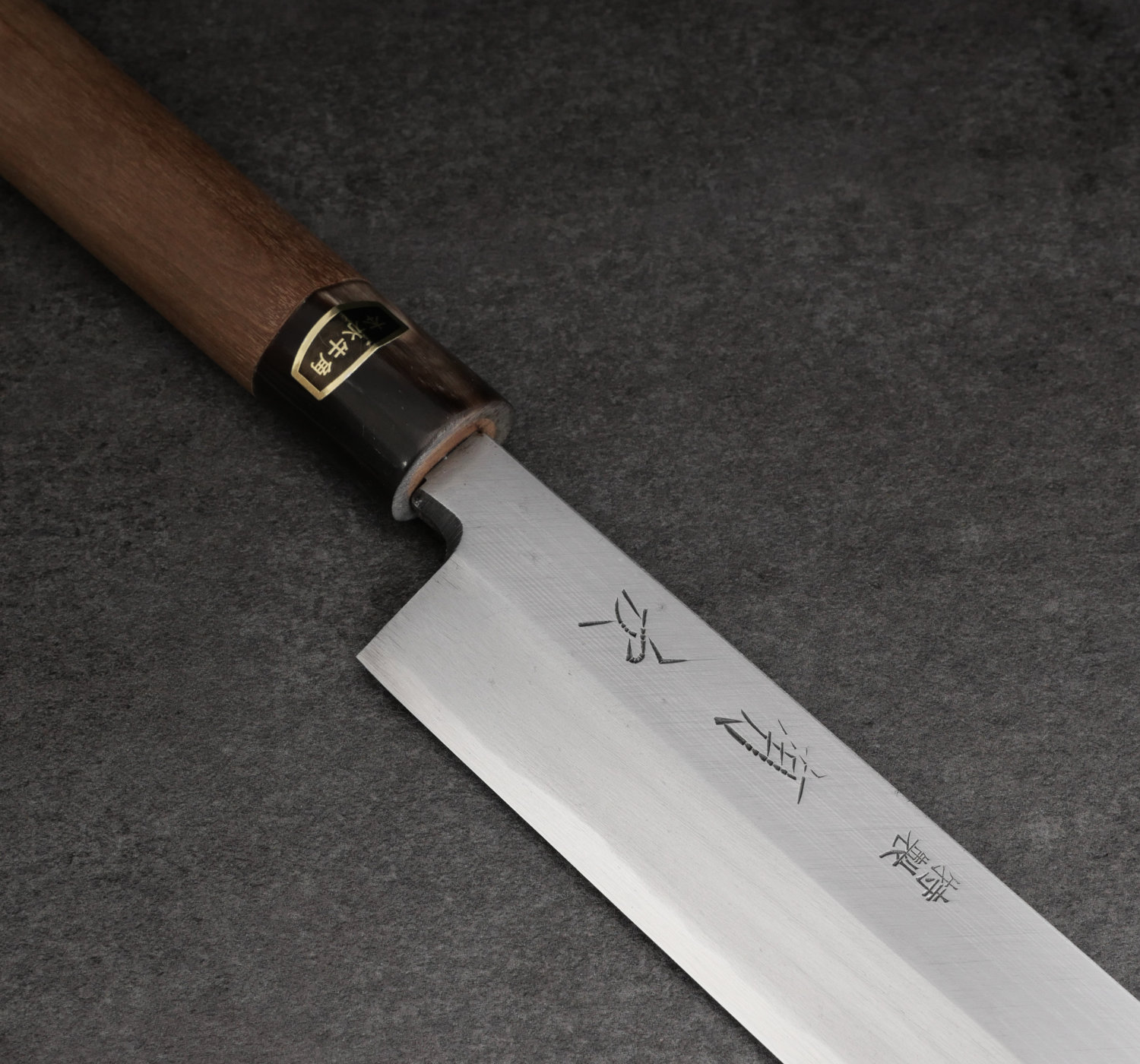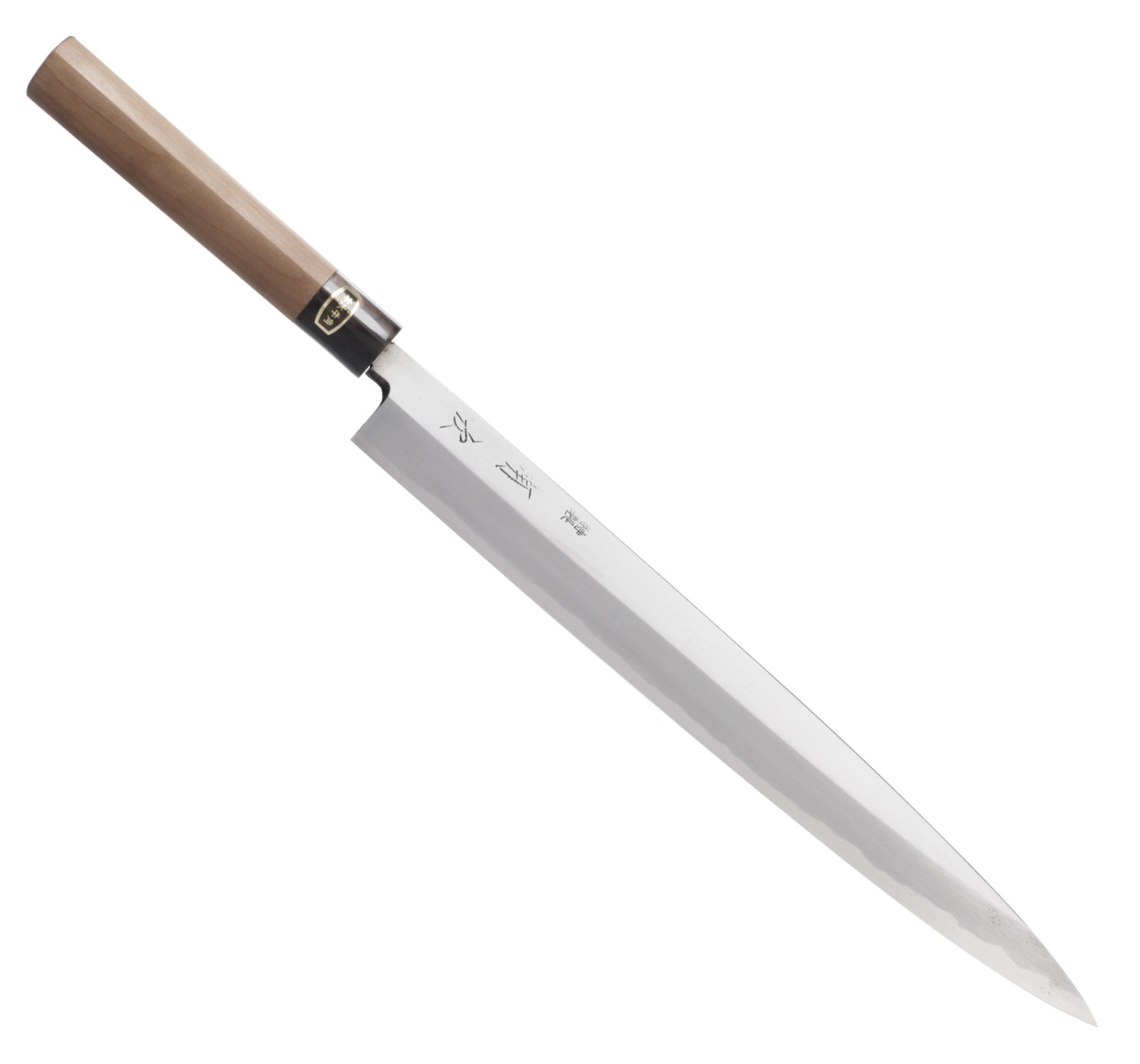 En mycket ovanlig yanagiba med hela 320 mm bladlängd, mätt från spets till häl.