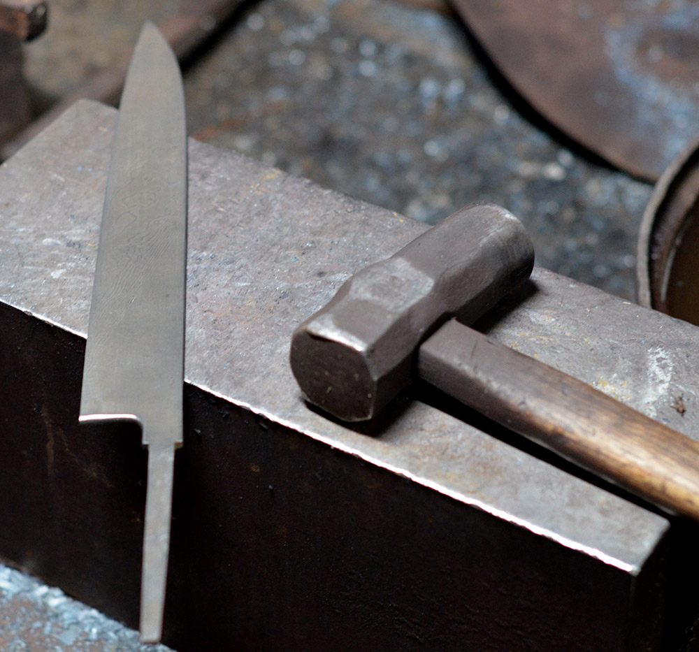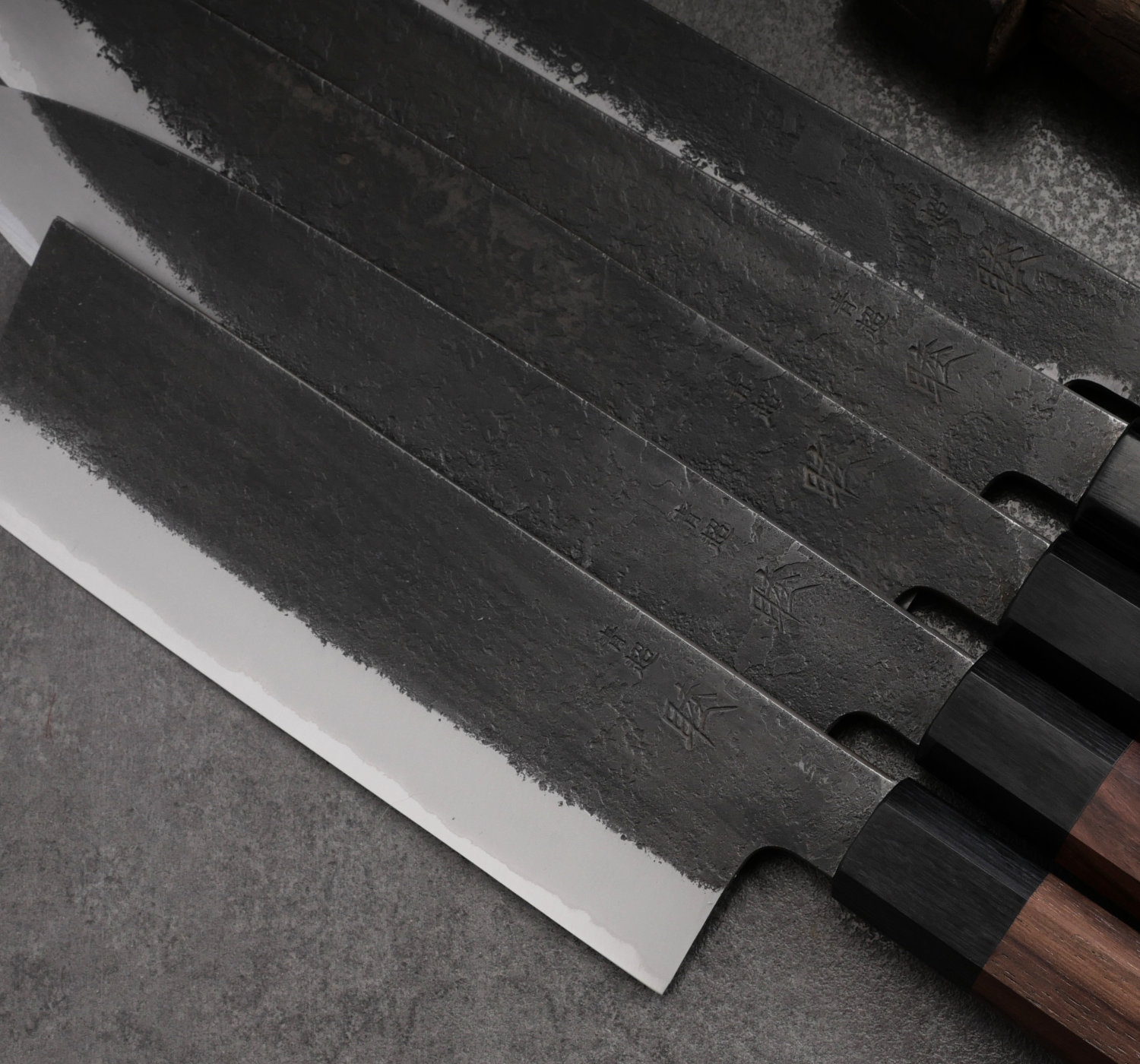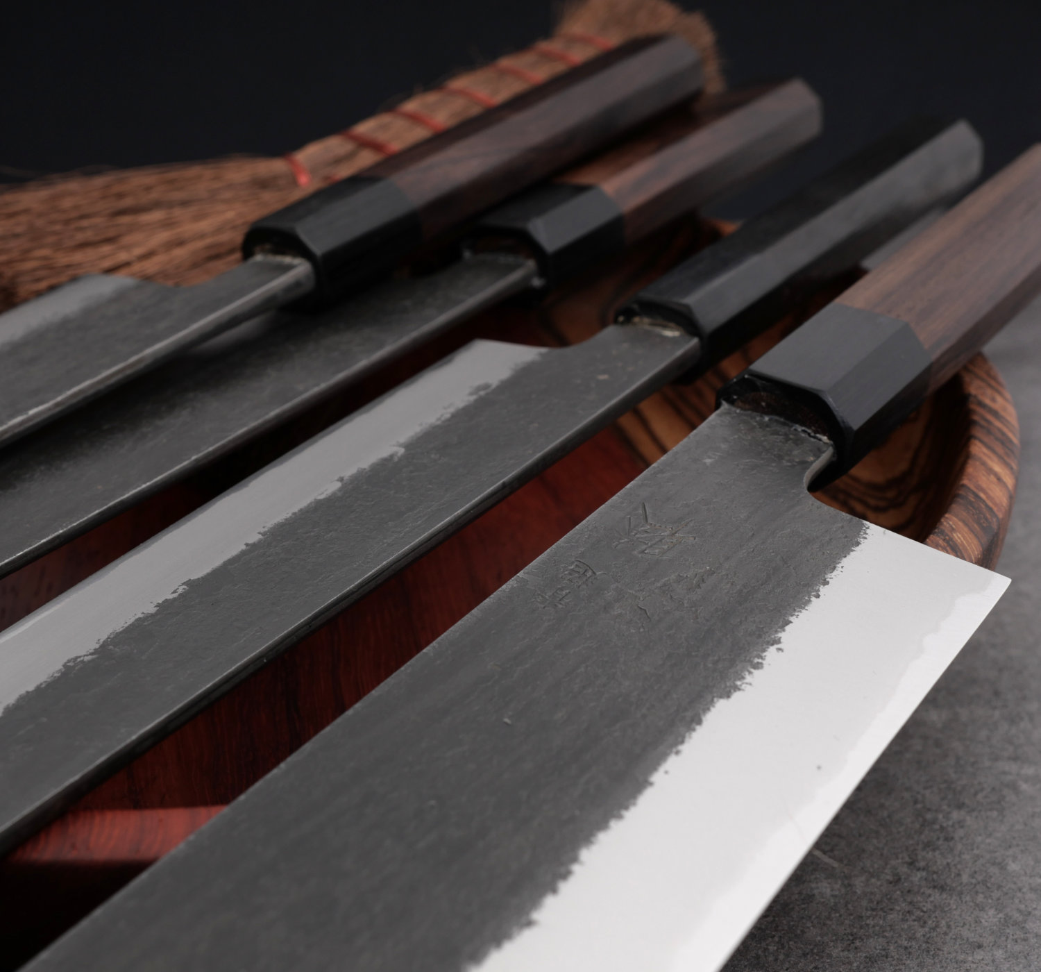 Mutsumi Hinoura är en högt aktad smed som arbetar i den lilla staden Sanjo i västra Japan. Alla knivar varmsmids för hand, och inget blad lämnar verkstaden utan att vara sylvasst och smitt till perfektion. I denna serie används kolstålet Aogami Super, härdat till 64 HRC, ett mycket hårt kolstål som håller skärpan länge och kan slipas till rakbladsvass nivå. Hinouras knivar är mycket eftertraktade och leveranstiderna är ofta mycket långa.