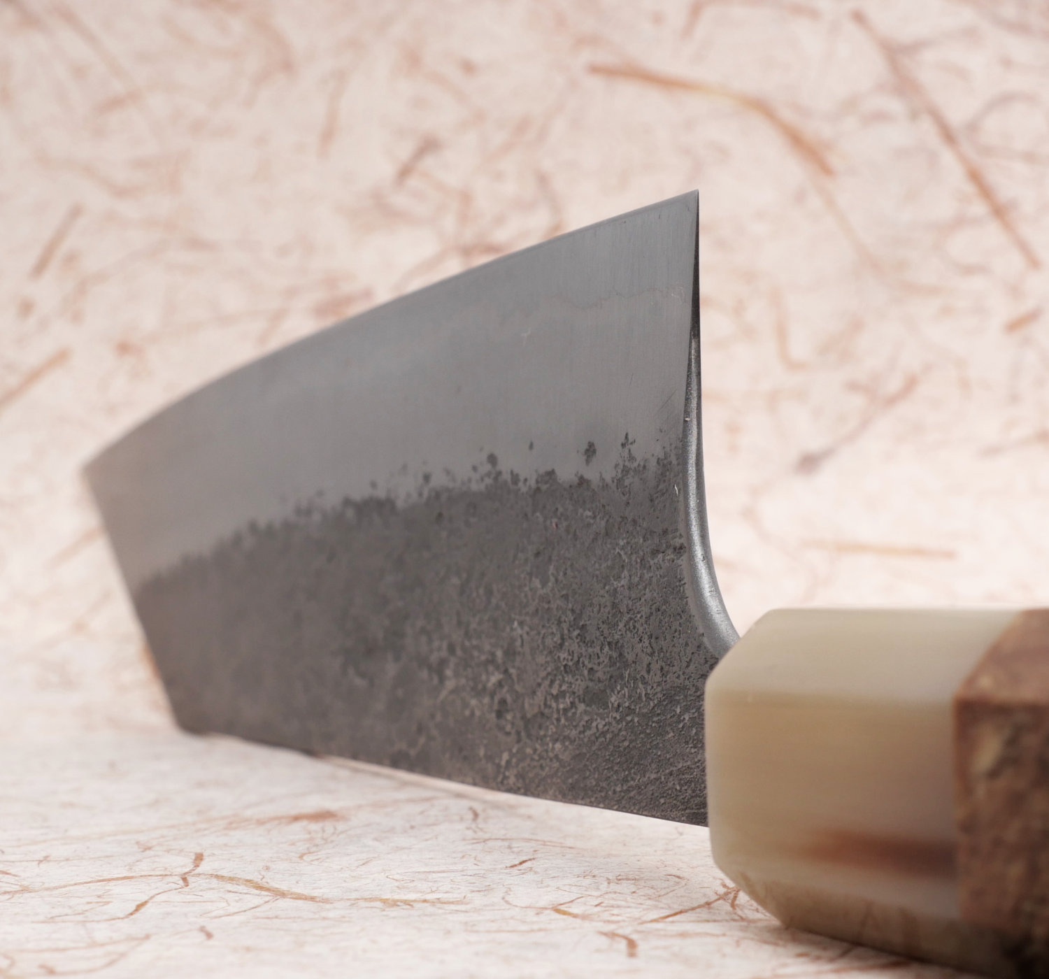 OBS: Kolstål är inte rostfritt! Torka alltid kniven torr efter användning så att inte rostangrepp uppstår. Kolstålet kommer med tiden att utveckla en patina i olika toner. Detta är fullt normalt, men kan poleras bort med polerpasta om så önskas.