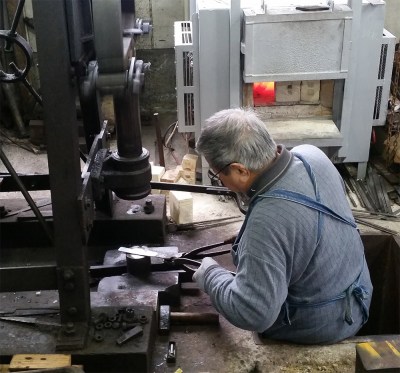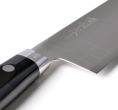 En japansk kockkniv (kallas santoku) med 3 lager stål. Kärnstålet består av lyxigt VG-10 stål (hårdhet 60-62 på Rockwellskalan). Denna kniv har ett extremt tunt och välslipat blad med skärpa som går att raka sig med. Den tunna och vassa eggen gör dock att bladet blir känsligt för hårdare råvarar, varför denna kniv ska användas med försiktighet så att skador på eggen inte uppstår. Handtaget i pakkaträ har 3 nitar samt bolster som bidrar till en avvägd balans.