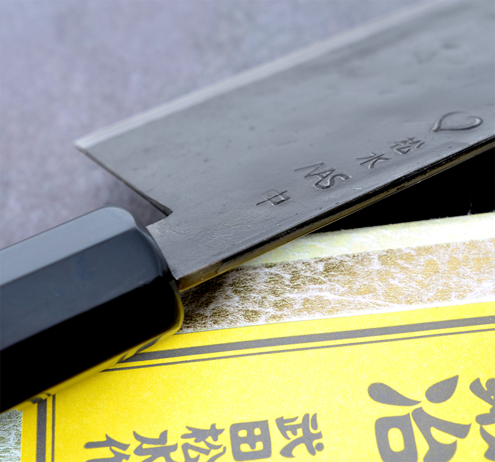 Takeda är kända för sina höga blad, generösa knogutrymmen och tunna, högpresterande geometrier. Trots bladets höjd och tydliga närvaro känns kniven förvånansvärt lätt och livlig i handen. Skäret lämpar sig utmärkt för push-cutting, skivning och precisionsarbete. Den råa kurouchi-finishen ger kniven ett traditionellt uttryck och bidrar samtidigt till ett visst rostskydd.