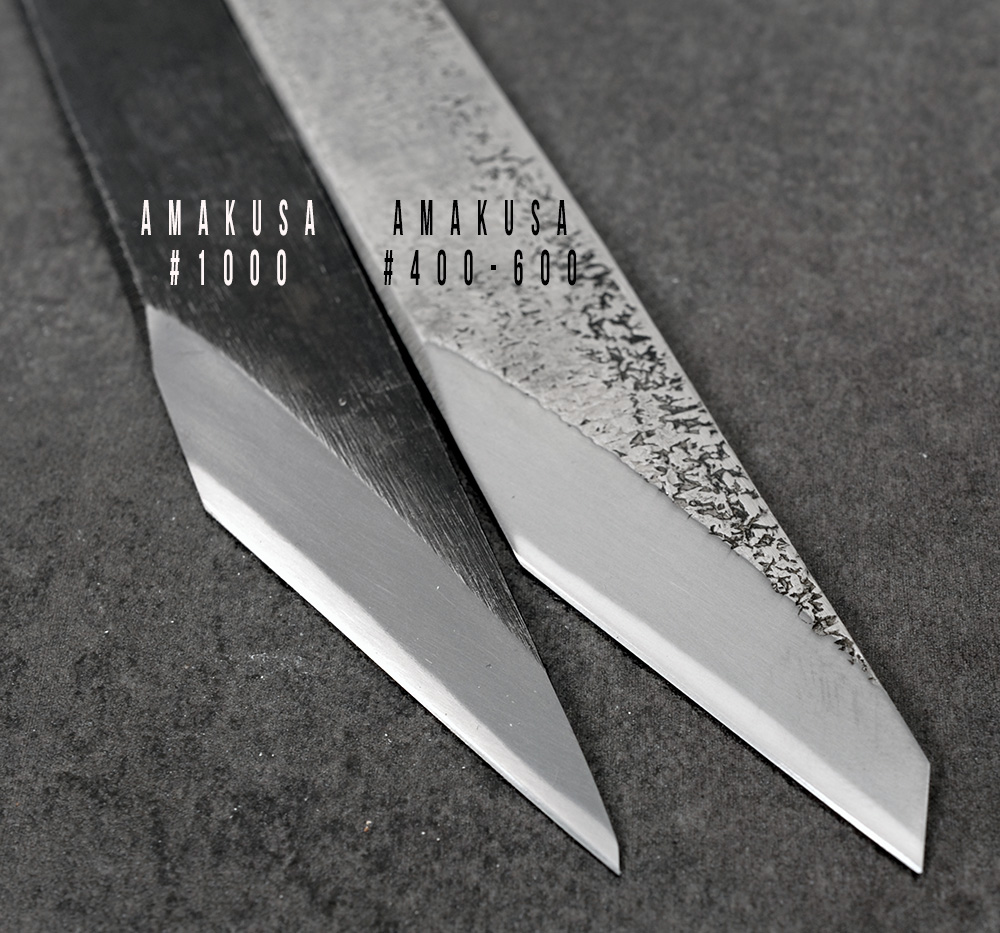 Denna amakusa natursten är medelfin och ger en täckande kasumifinish. Den ger fina kontraster på knivar med järnkappa och vi bedömer att en jämförelse med en syntetisk sten skulle motsvara en kornstorlek på cirka 1000 grit. Fördelen med att använda en grov natursten är att repmönstret den skapar är lättare att ta bort jämfört med de grova repor en syntetsten skapar.Därför är denna sten bra som processten i jakten på en perfekt kasumi.