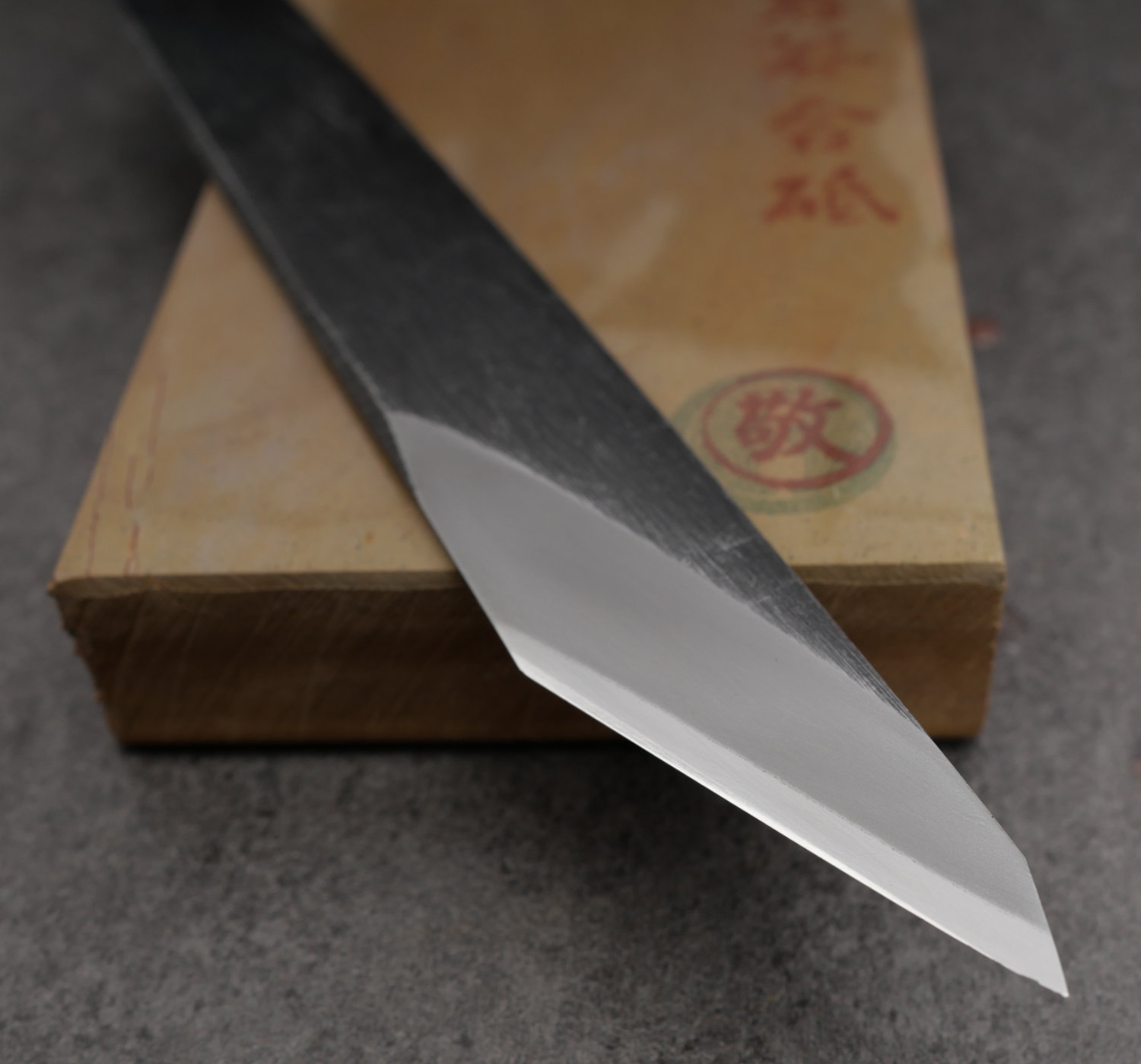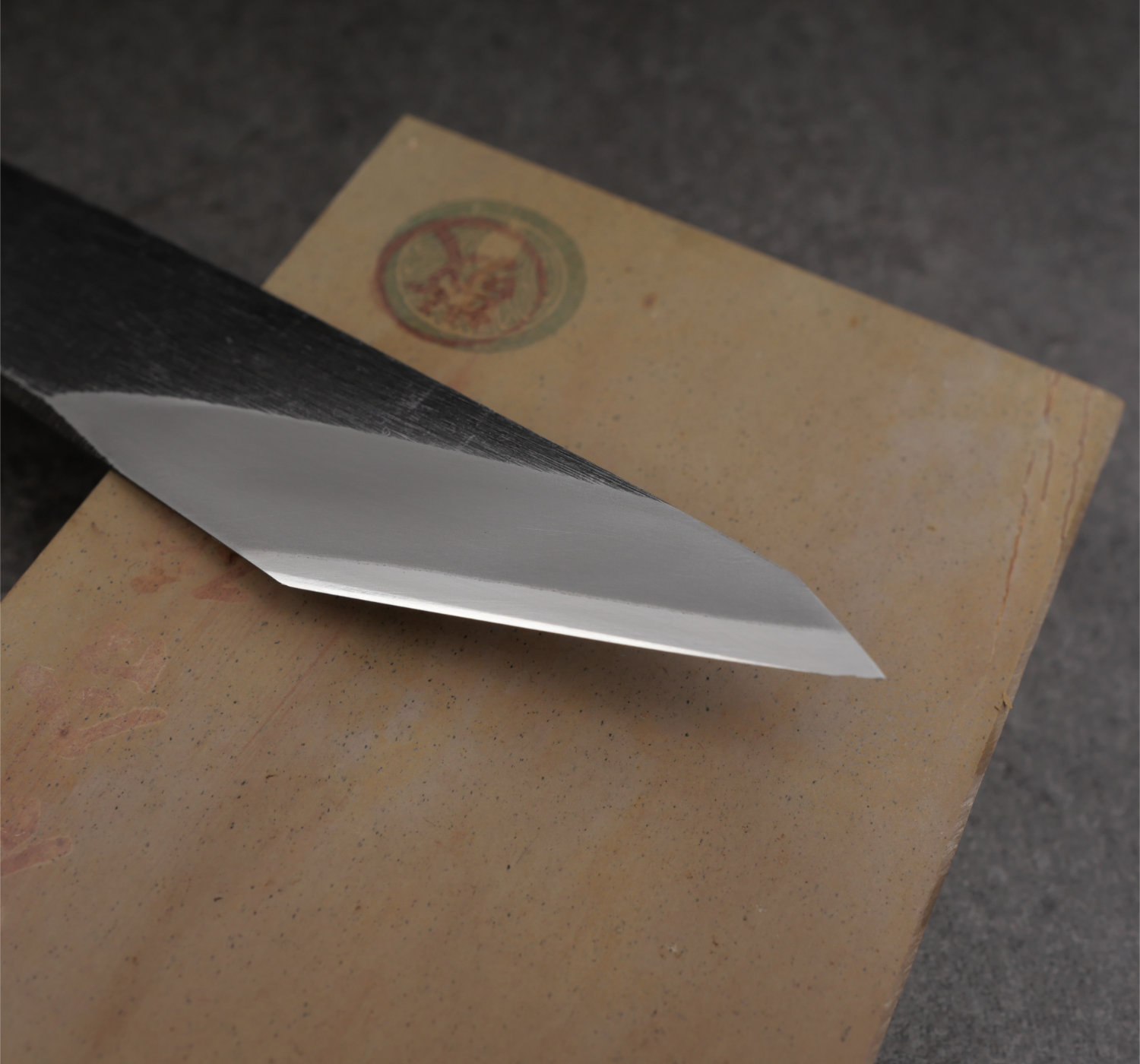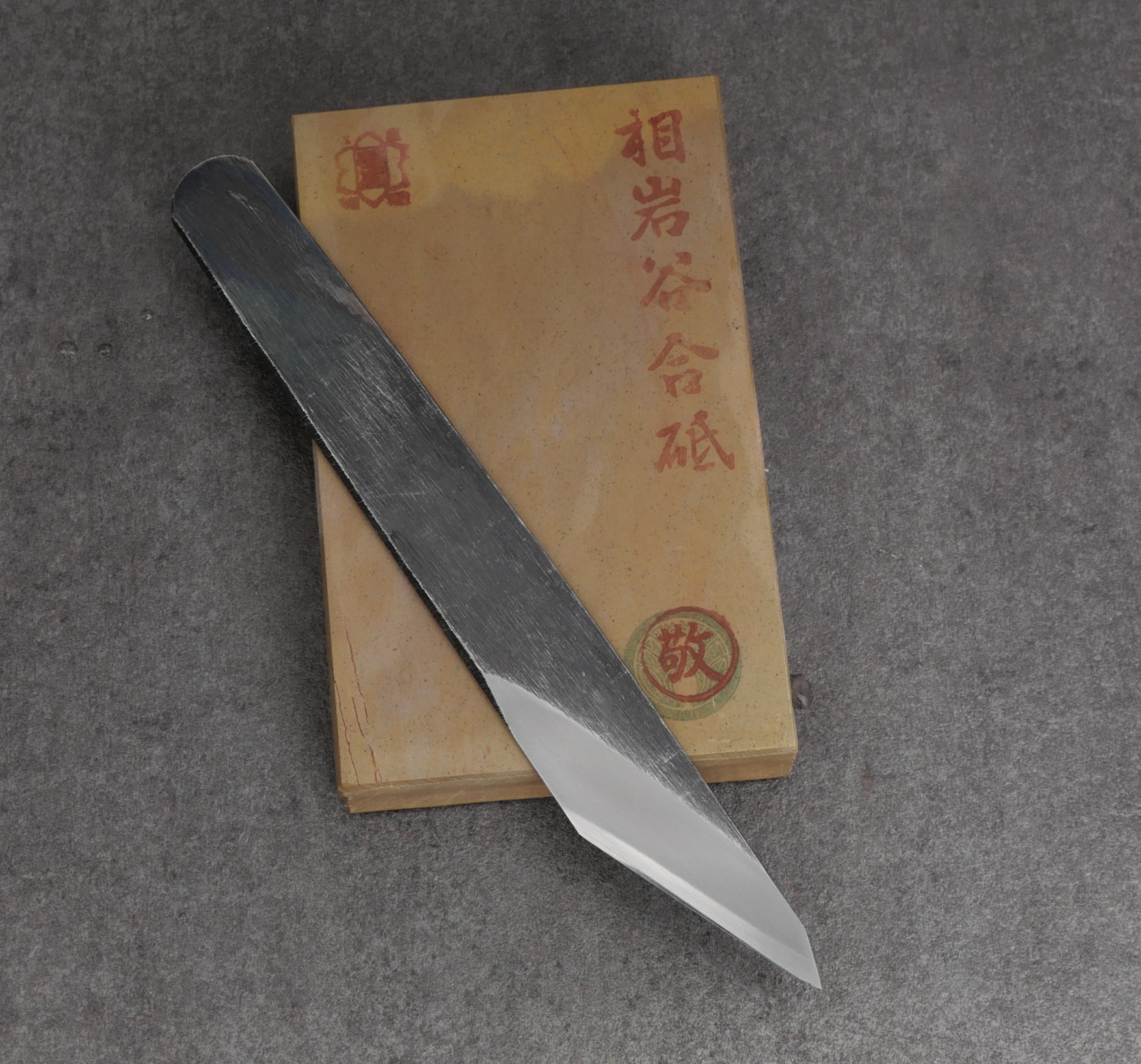 Aiwadani är idealisk för dig som vill ha en mjuk och förlåtande natursten för ljus kasumi-polering. Kiridashin på bilden har bara 1 minuts polering på denna sten. Mycket lättanvänd sten!