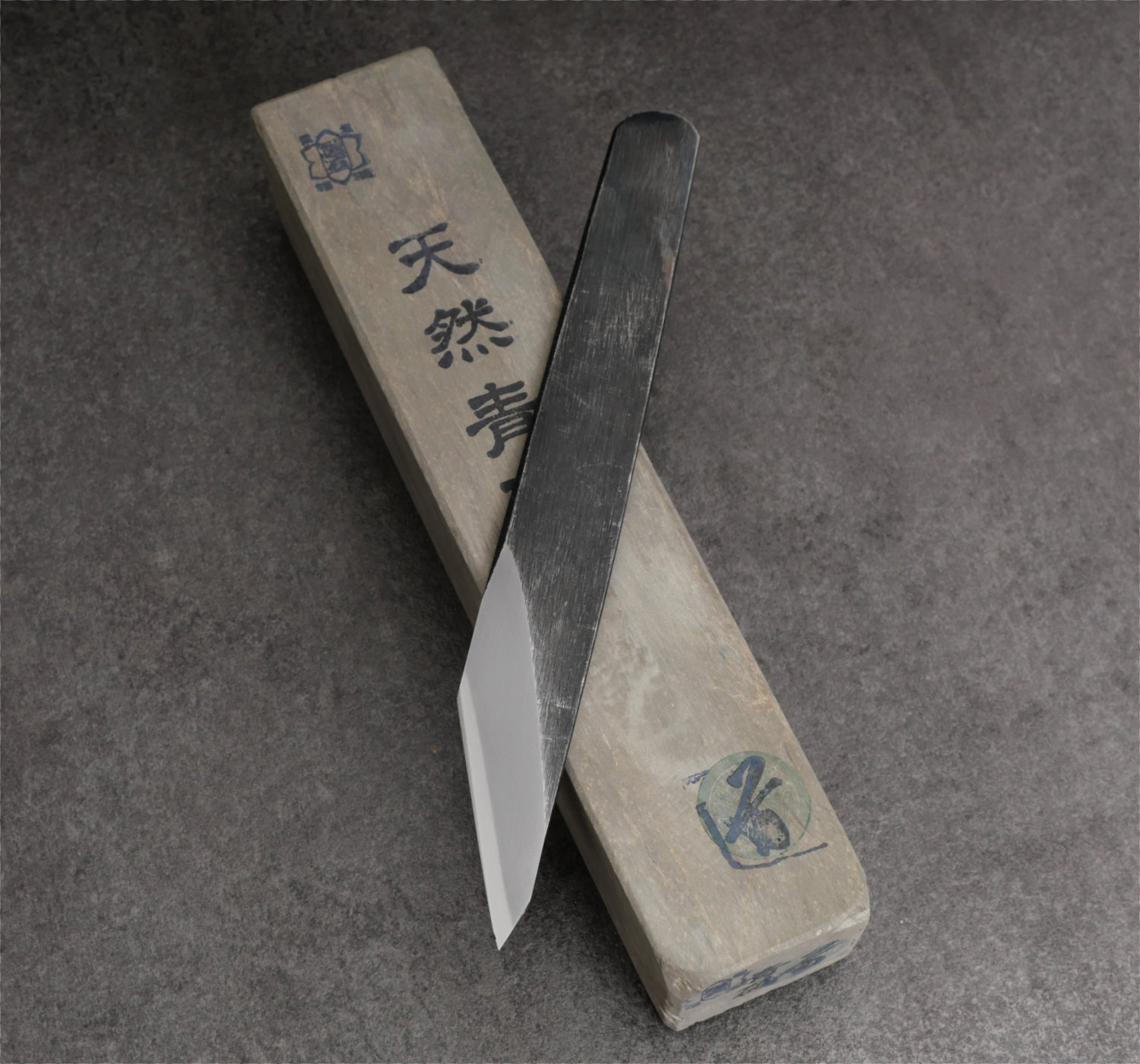 Det här är en riktigt spännande produkt. En medelgrov natursten, aoto, som ger mörk och täckande kasumi med goda kontraster. Dock blir den inte helt fri från repor eftersom det är en grövre sten jämfört med polerstenar. Eggen blir tandig och ger ett grymt bett. Det här är en sten du kan använda som mellansteg i din kasumi-slipning om du känner att du vill söka dig till en ljus och blank kasumi. Du kan också stanna på denna nivå och njuta av en täckande kasumi som går snabbt att återskapa.