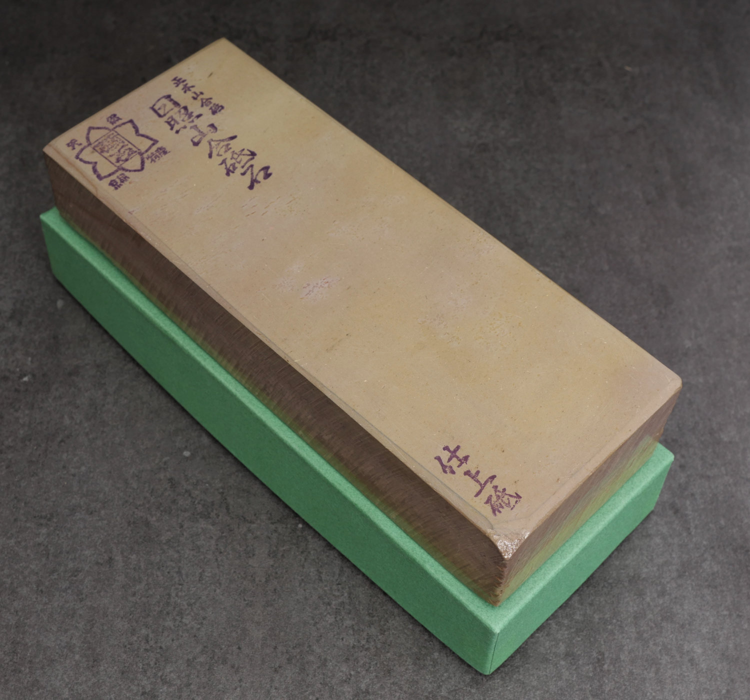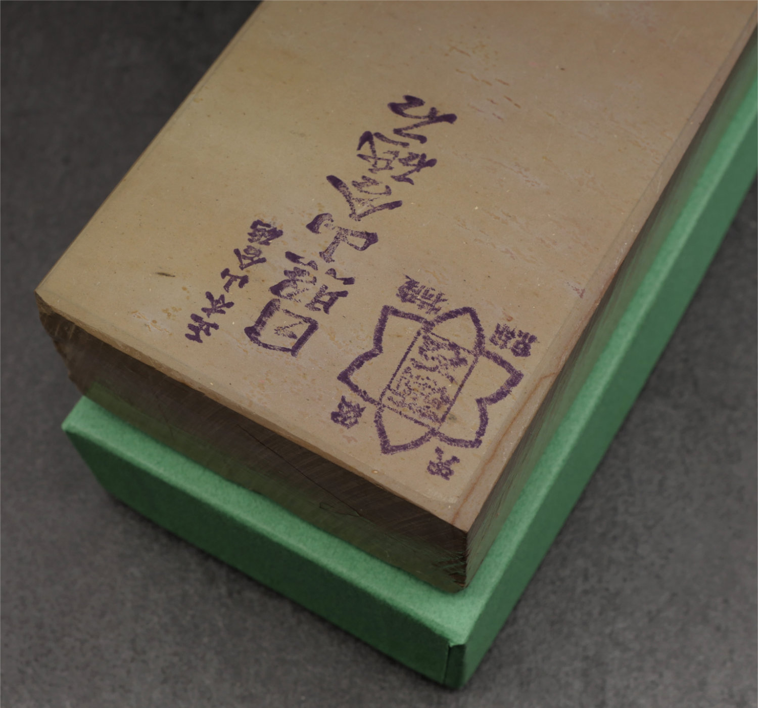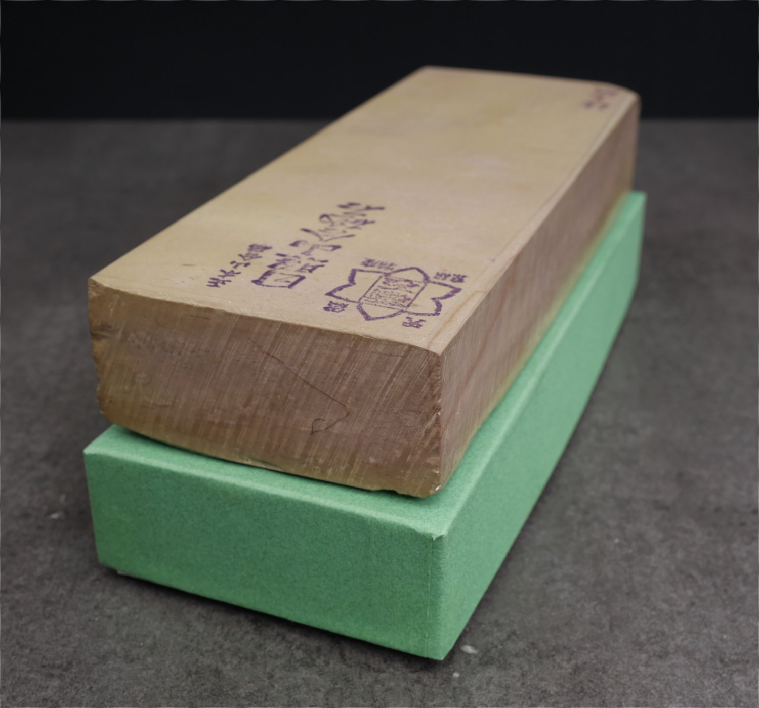 En exklusiv Hideriyama natursten i vacker beige ton, i perfekt skick med tydliga originalstämplar. Denna sten kommer från de berömda gruvorna i Kyoto-regionen och är känd för sin jämna struktur, höga densitet och fina känsla vid slipning.