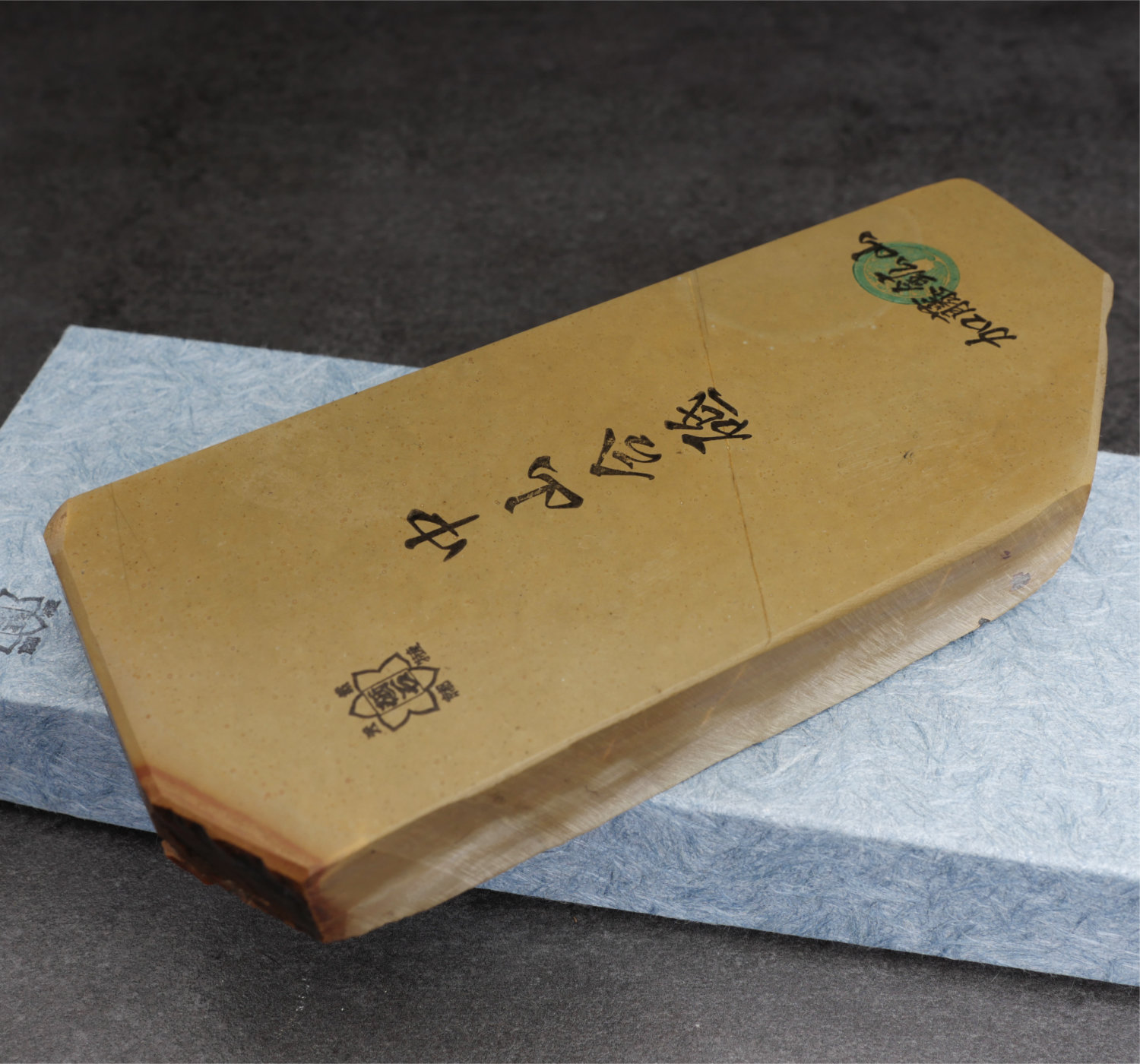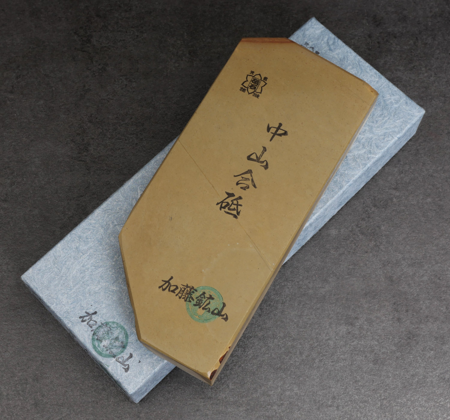 En stor, medelhård och krämig Nakayama natursten, perfekt för kasumislipning som skapar hög kontrast mellan jigane och hagane.