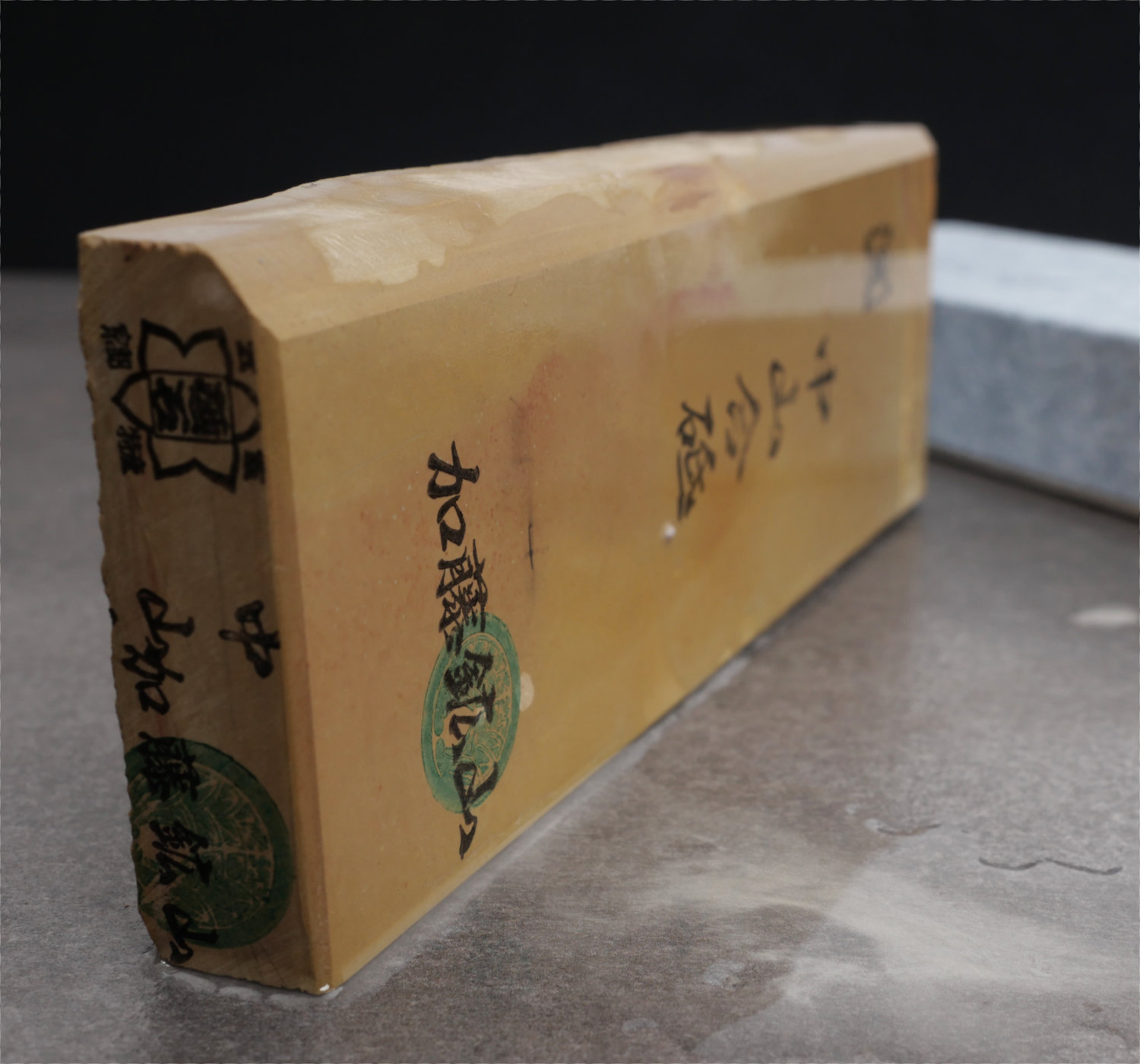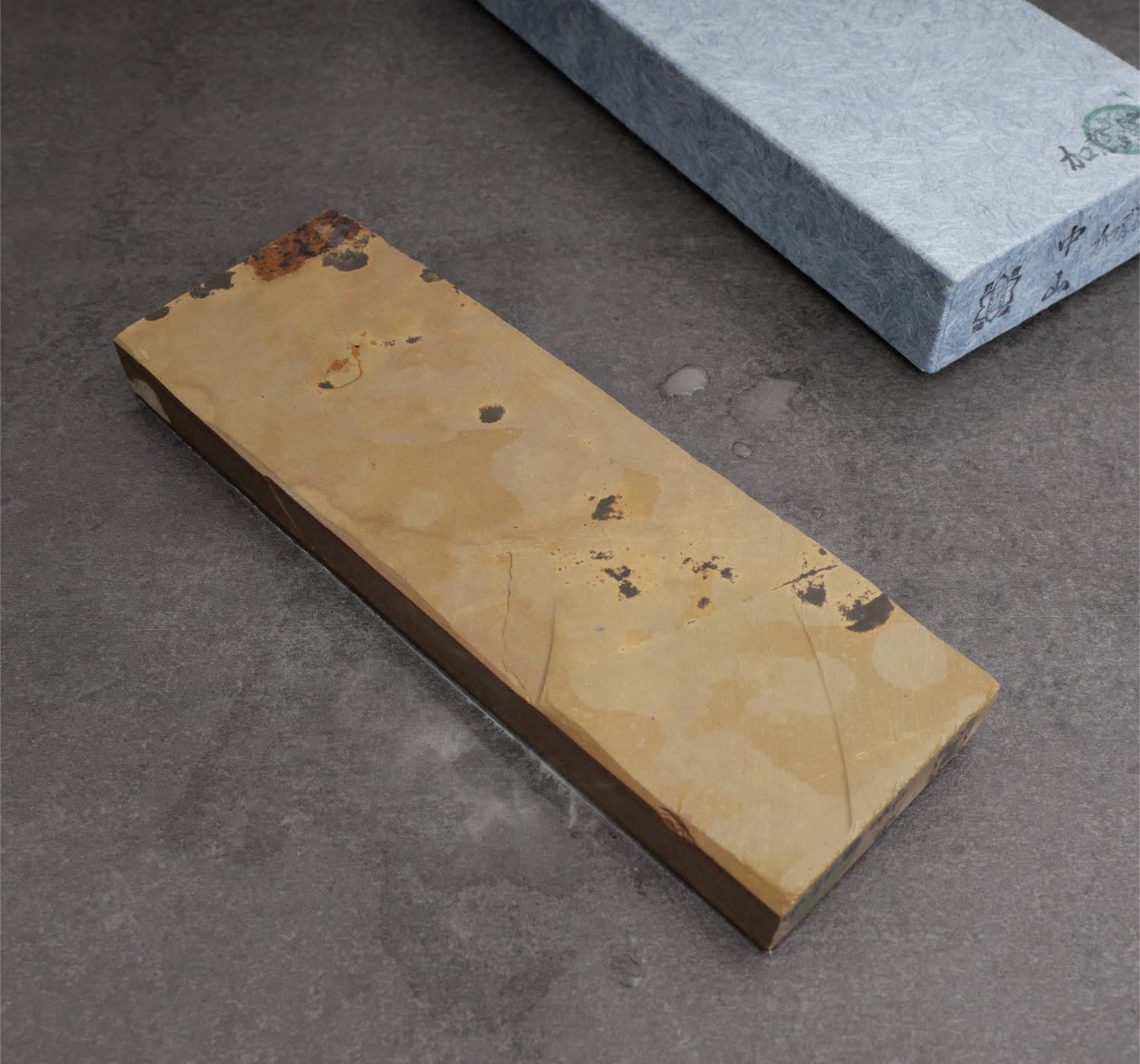 En medelhård till hård Nakayama natursten med tydlig renge och en krämig, kontrollerad känsla vid slipning. Den ger en medelblank kasumi och fungerar mycket bra som slutsten för köksknivar.