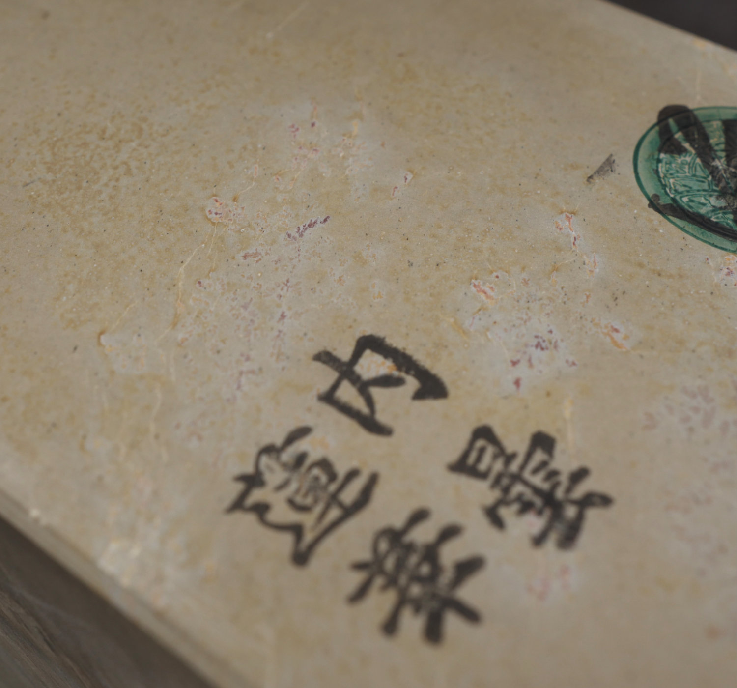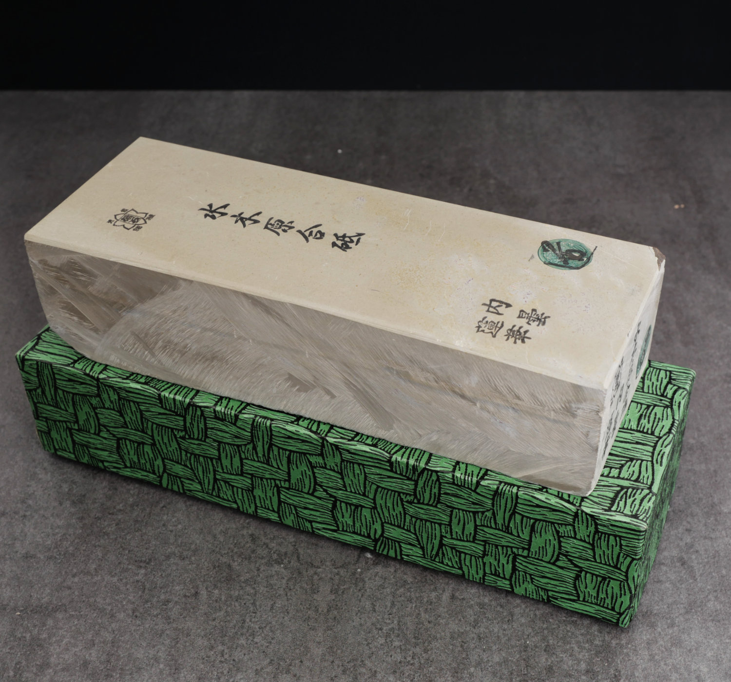 En extremt stor och sällsynt Uchigumori natursten från Mizukihara. Gruvan Mizukihara (水木原) återfinns i västra Kyoto, belägen vid berget Ōhira. Gruvan är särskilt känd som en av de få källorna till äkta Uchigumori-stenar, som används inom traditionsenlig japansk polering.