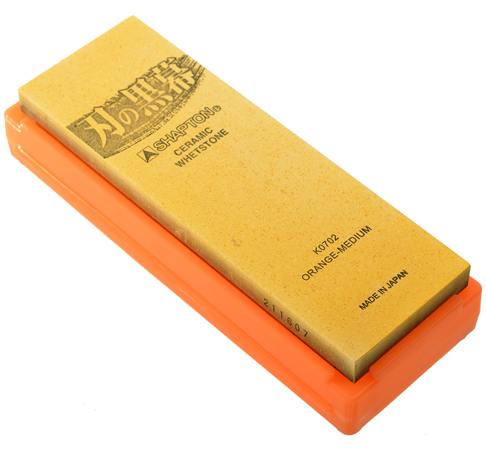 Shapton tillverkar enligt många de absolut bästa stenarna på marknaden. Dom avverkar metall på ett högeffektivt sätt och stenarna är mycket hårda. Den hårda keramiken slits väldigt långsamt vilket gör att du inte behöver plana ut stenarna lika ofta som en mjukare sten. Stenen förbrukar minimalt med vatten och är av typen 'splash & Go' som innebär att man inte lägger stenen i vatten innan användning. Istället häller man på en handflata med vatten och börjar slipa direkt.