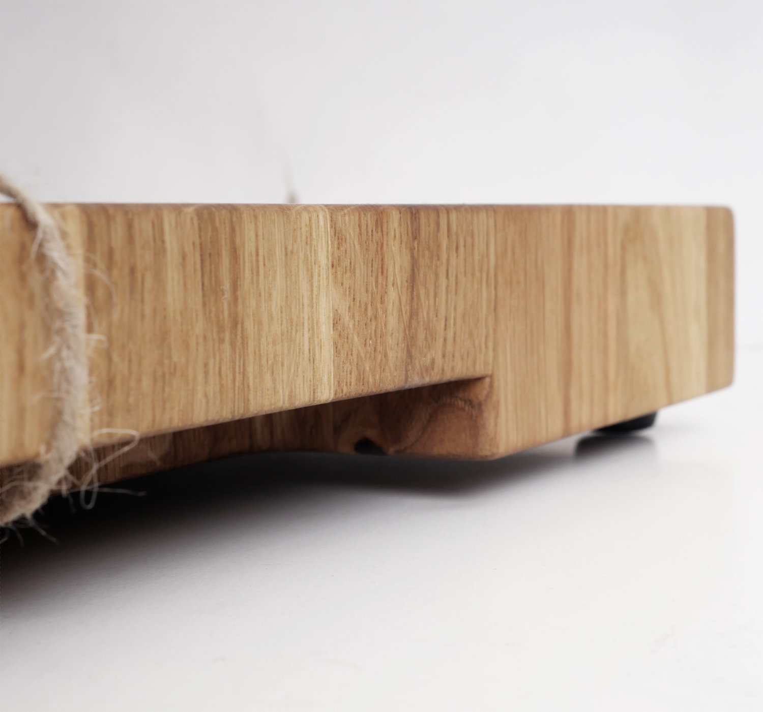 För att garantera långvarig kvalitet och hållbarhet har skärbrädan genomgått en noggrann behandling med kokt linolja.