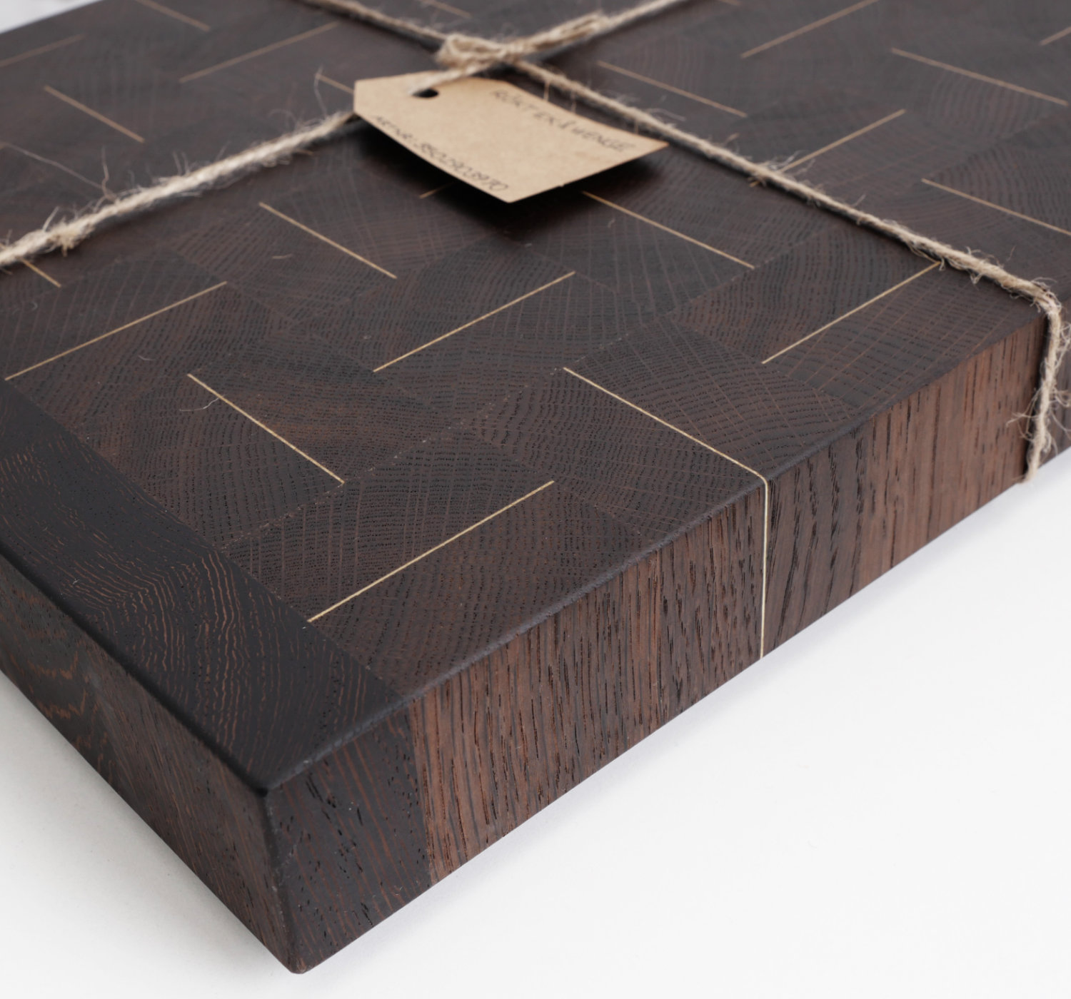 Varje skärbräda är unik och just denna är skapad i rökt ek som kompletteras av kanter i wenge.